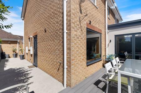 Externally, you'll find a LOW MAINTENANCE, LANDSCAPED REAR GARDEN that enjoys SUN ALL DAY, along with a LARGE FRONT DRIVEWAY and a DOUBLE GARAGE.