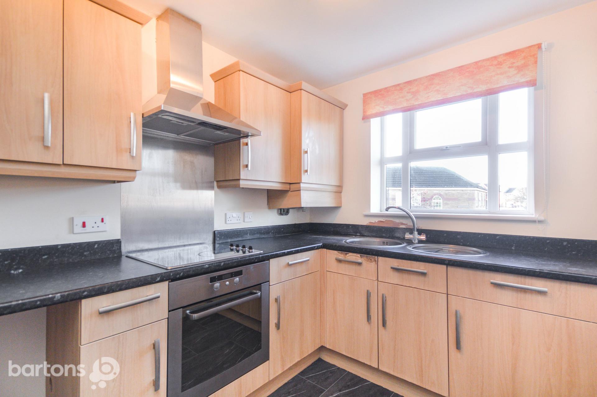 Inside, you'll find a spacious Lounge with a charming Juliette balcony, a fitted Kitchen complete with built-in electric hob, oven, and washing machine, two generously sized Bedrooms, both neutrally decorated. The Bathroom features a bright three-piece suite with a shower over the bath.