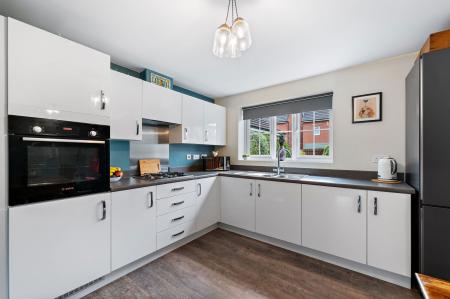 Step inside to find a bright and airy lounge, and a SPACIOUS DINING KITCHEN that opens directly onto a BEAUTIFULLY MANICURED REAR GARDEN, perfect for entertaining or relaxing outdoors. A DOWNSTAIRS WC adds convenience, while upstairs boasts FOUR WELL-PROPORTIONED BEDROOMS, including a master with EN-SUITE, plus a sleek, MODERN FAMILY BATHROOM.