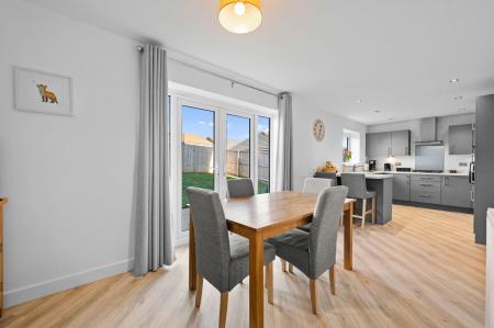The property is tucked away on a PEACEFUL CUL-DE-SAC, making it ideal for families. Inside, you’re welcomed by an entrance hall with GROUND FLOOR WC and access to the INTEGRAL GARAGE. The GENEROUS LOUNGE provides a comfortable space to relax, while the heart of the home is the IMPRESSIVE OPEN PLAN FAMILY DINING KITCHEN, a fantastic space for everyday living and entertaining, with doors opening directly onto the garden. A SEPARATE UTILITY ROOM adds further practicality.