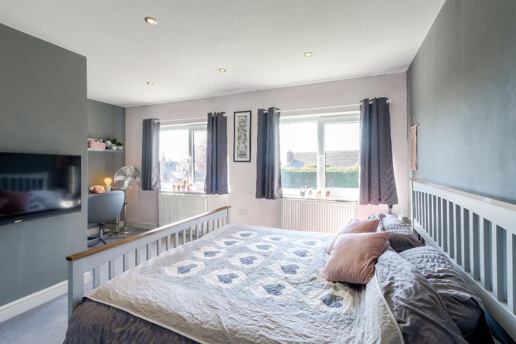 The second double bedroom is very large in size offering ample space for furnishings and boasts dual aspect windows to the front. TV point.