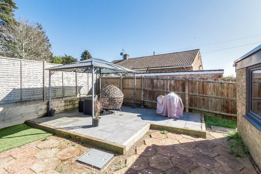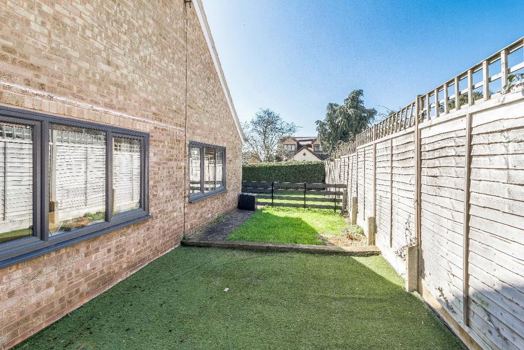 The two side garden areas are seamlessly connected by the rear garden, which includes a further patio area, low-maintenance artificial lawn, and raised timber borders. The entire plot is enclosed by high fencing, providing a high degree of privacy and a peaceful outdoor setting.
