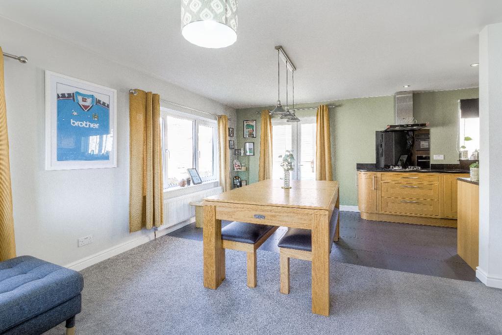 19' 1'' x 12' 4'' (5.83m x 3.76m) The lounge has been tastefully modernised to create a contemporary open-plan flow into the dining area and kitchen, while the "L"-shaped layout maintains a sense of defined, individual spaces. The room is filled with natural light from double-glazed windows to the front and side aspects and features television and telephone points.