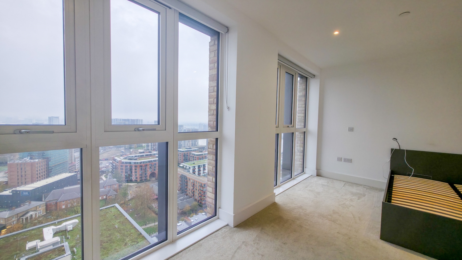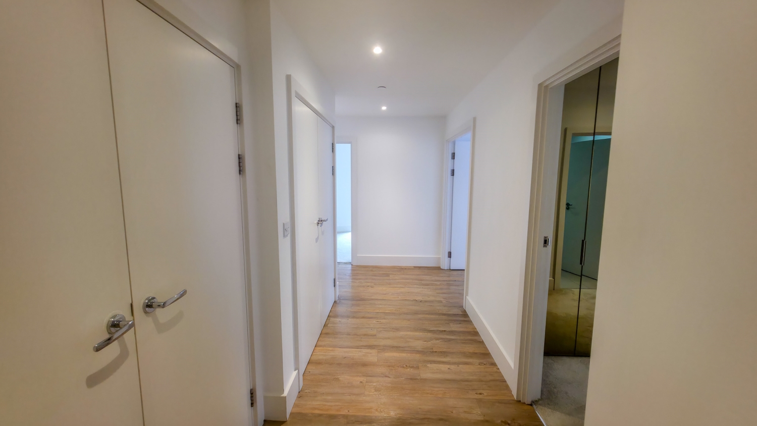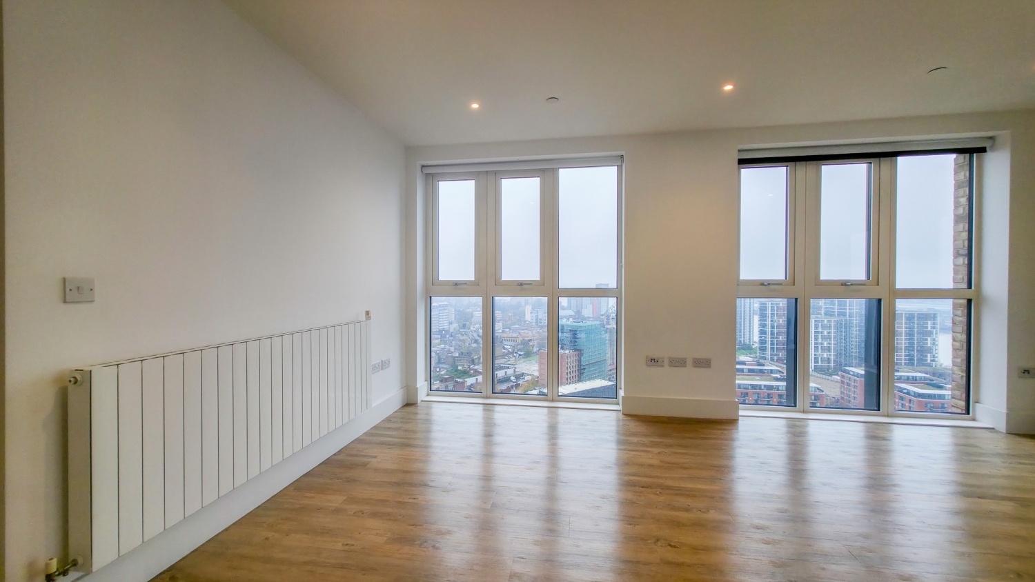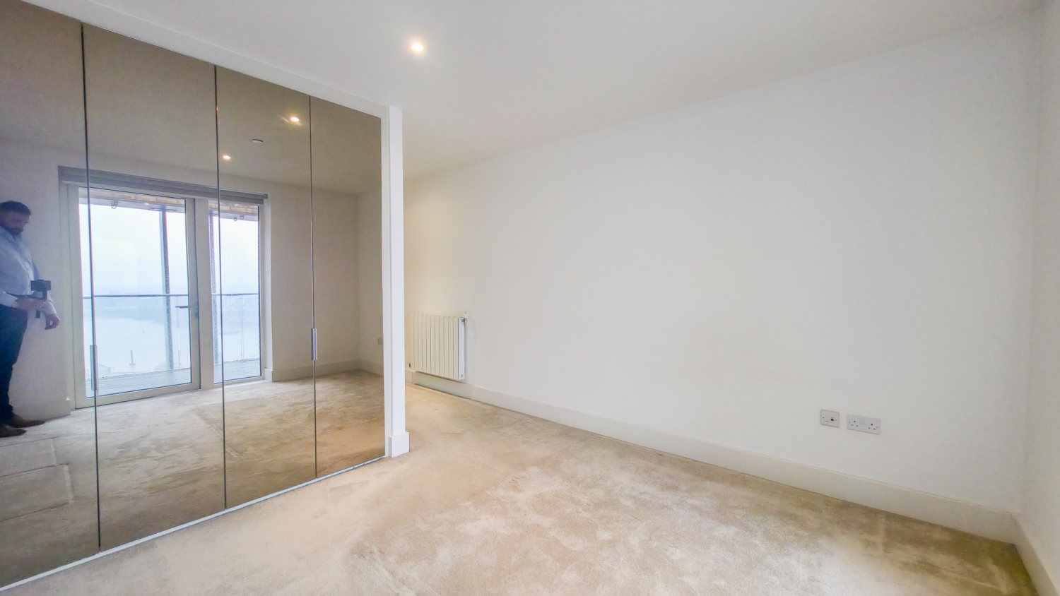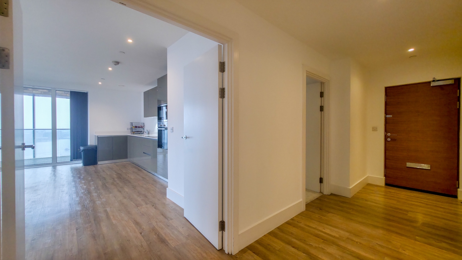 The apartment features three generously sized double bedrooms, including a stunning master suite with en-suite shower room, and a further high-spec family bathroom with a sleek, contemporary finish. The spacious open-plan living and dining area is bathed in natural light thanks to floor-to-ceiling windows, and flows seamlessly into the modern integrated kitchen, complete with high-end appliances and stylish fittings.