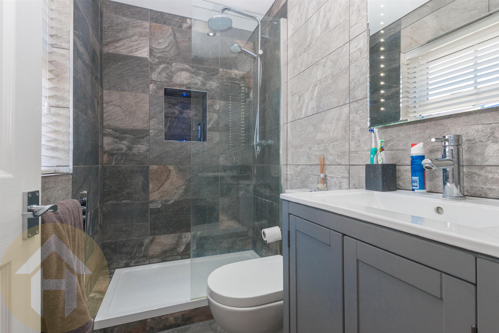 The accommodation includes an entrance hall, a spacious open-plan lounge and dining area, and a beautifully extended kitchen with integrated appliances and internal access to the former garage, now used for storage. Upstairs, the property offers three bedrooms, with the master featuring a dedicated dressing area and a stylish en-suite shower room. A modern, well-appointed family bathroom serves the remaining two bedrooms.