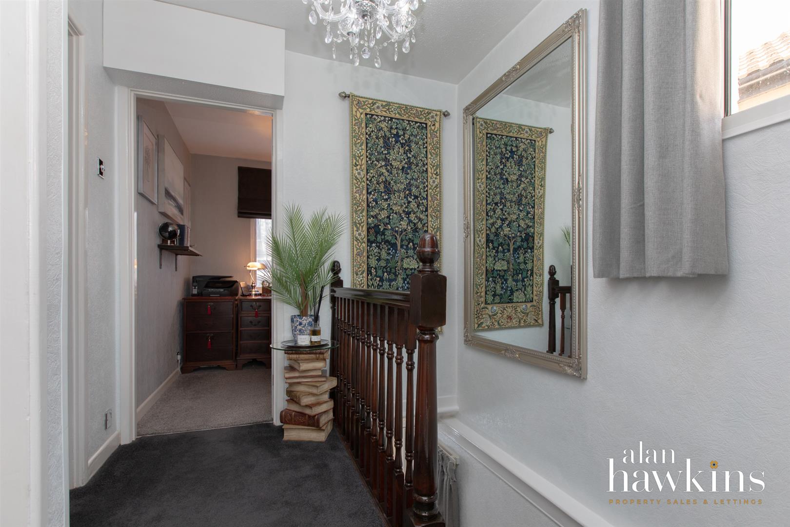 To the front, the property benefits from off-street parking for 2-3 vehicles, including gated side access to the rear. The beautifully maintained and landscaped rear garden offers an elevated patio seating area with steps down to a large lawn, perfect for families, gardeners, or outdoor entertaining.