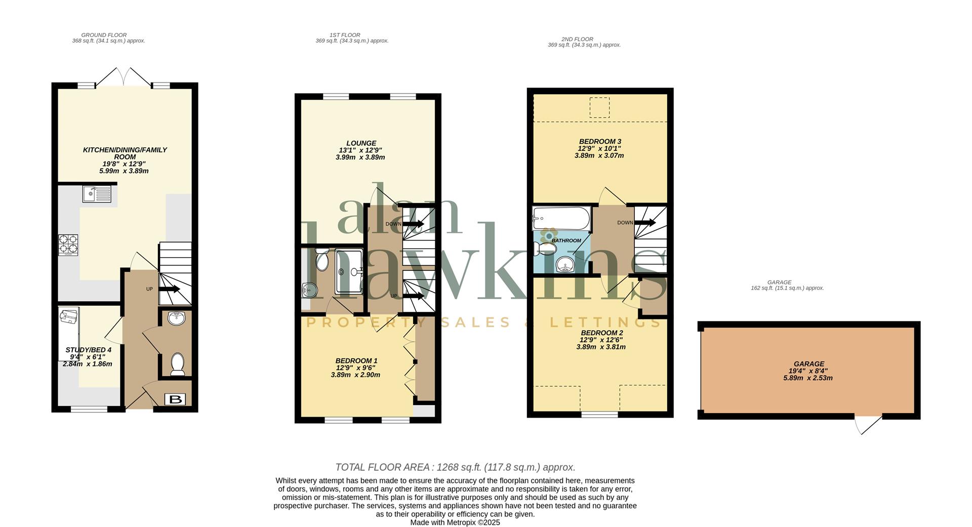 The well-planned accommodation begins with an entrance hall leading to a cloakroom, a versatile study which has been neatly fitted out by the current owners, or can be utilised as a fourth bedroom, and an impressive 20ft kitchen/dining/family room, ideal for modern living. The first floor features a welcoming lounge at the rear and a generous master bedroom and an en-suite shower room. On the top floor, two further double bedrooms are accompanied by a stylish family bathroom.