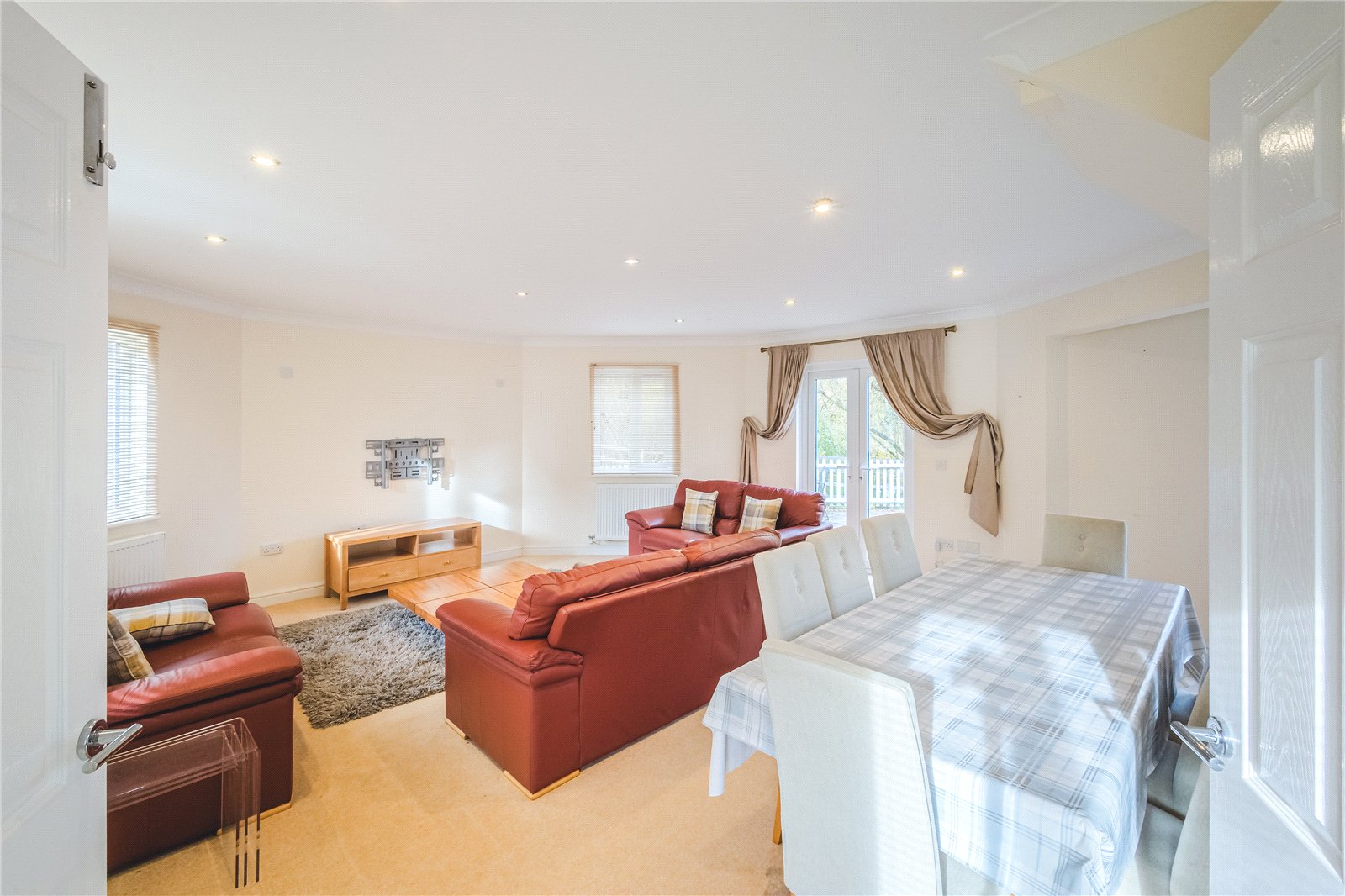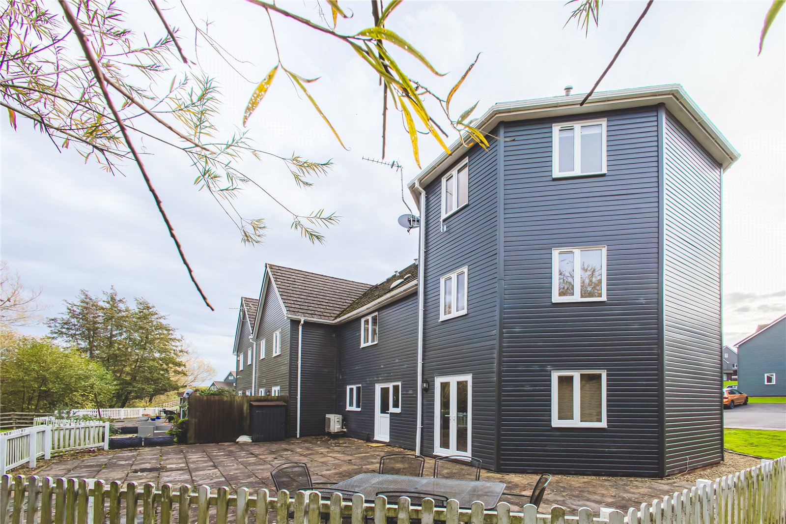 Built in 2007 with sustainable timber, this impressive Marlborough design offers over 1,500 sq ft of accommodation across three floors, featuring a distinctive turret-style living area, a modern fitted kitchen, four bedrooms, and three bathrooms.