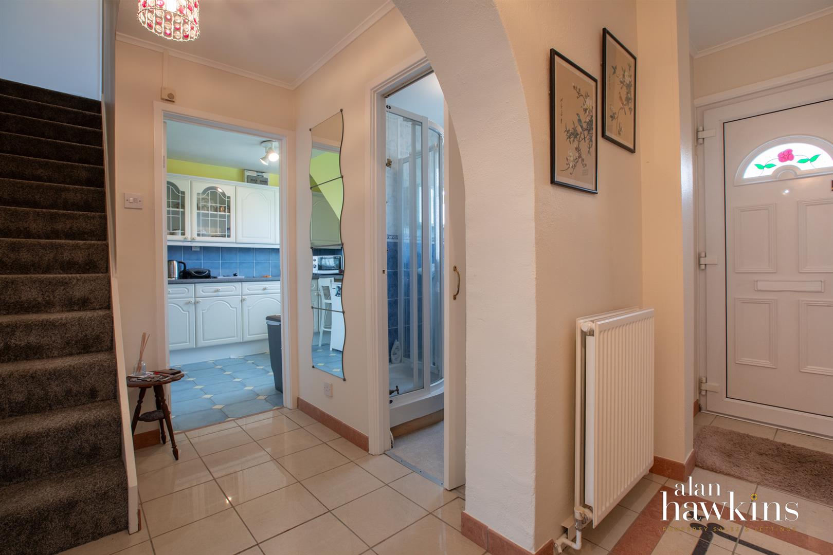 The property has been thoughtfully extended to enhance the ground floor accommodation, now comprising an extended entrance hallway providing a welcoming first impression and useful additional space, along with a rear enclosed porch offering further practicality. The living room flows seamlessly into an extended dining area, creating a generous reception space ideal for both everyday living and entertaining, with patio doors opening directly onto the enclosed rear garden. The kitchen is well positioned and complemented by a ground floor shower room, adding flexibility and convenience.