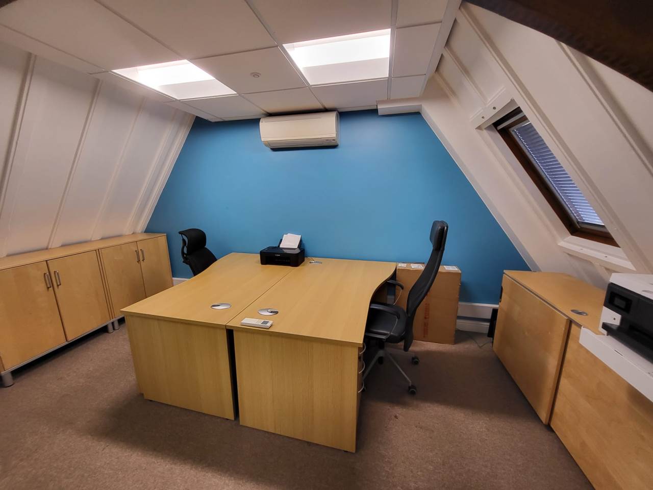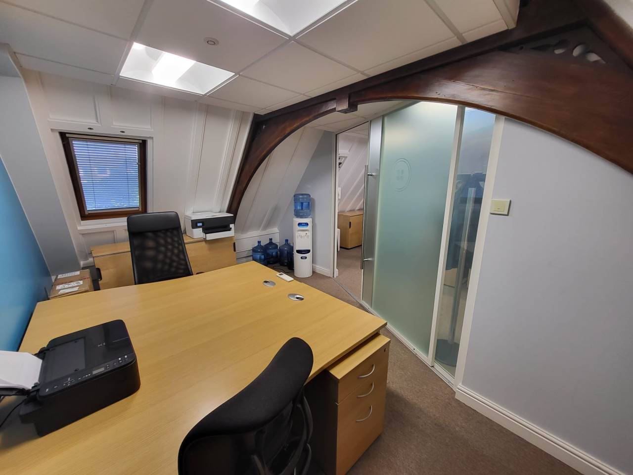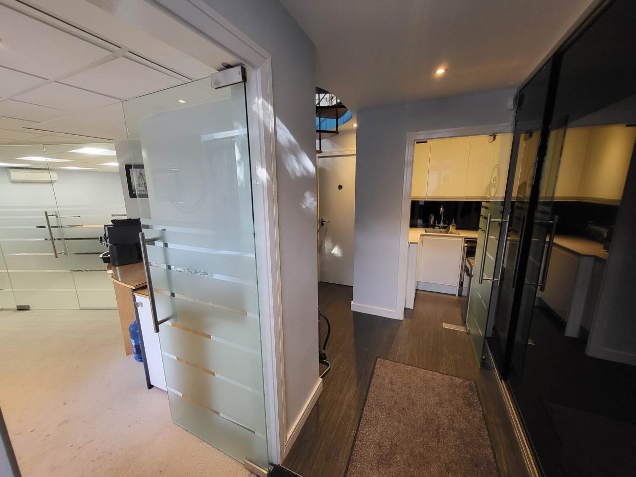 Abode are delighted to offer to market this very well presented Freehold commercial property in the heart of the historic market town of Royston, Hertfordshire. The property has been fitted out to high standards with glass partitioning, air-condtioning and high level finishes throughout. Downstairs we have a private double office, and larger board room, WC, and seperate kitchenette. There are spiral stairs heading to the upstairs office which lead to an open plan office within the vaulted ceiling, The room is light with Velux windows to the rear, a glass partition separates another private office. The property further benefits from two parking spaces, the location is close to the town centre, and there are several nearby car parks with additional parking. The property is also a 8 minute walk to the mainline train station. Viewing available by prior appointment only, please contact Abode to arrange today.