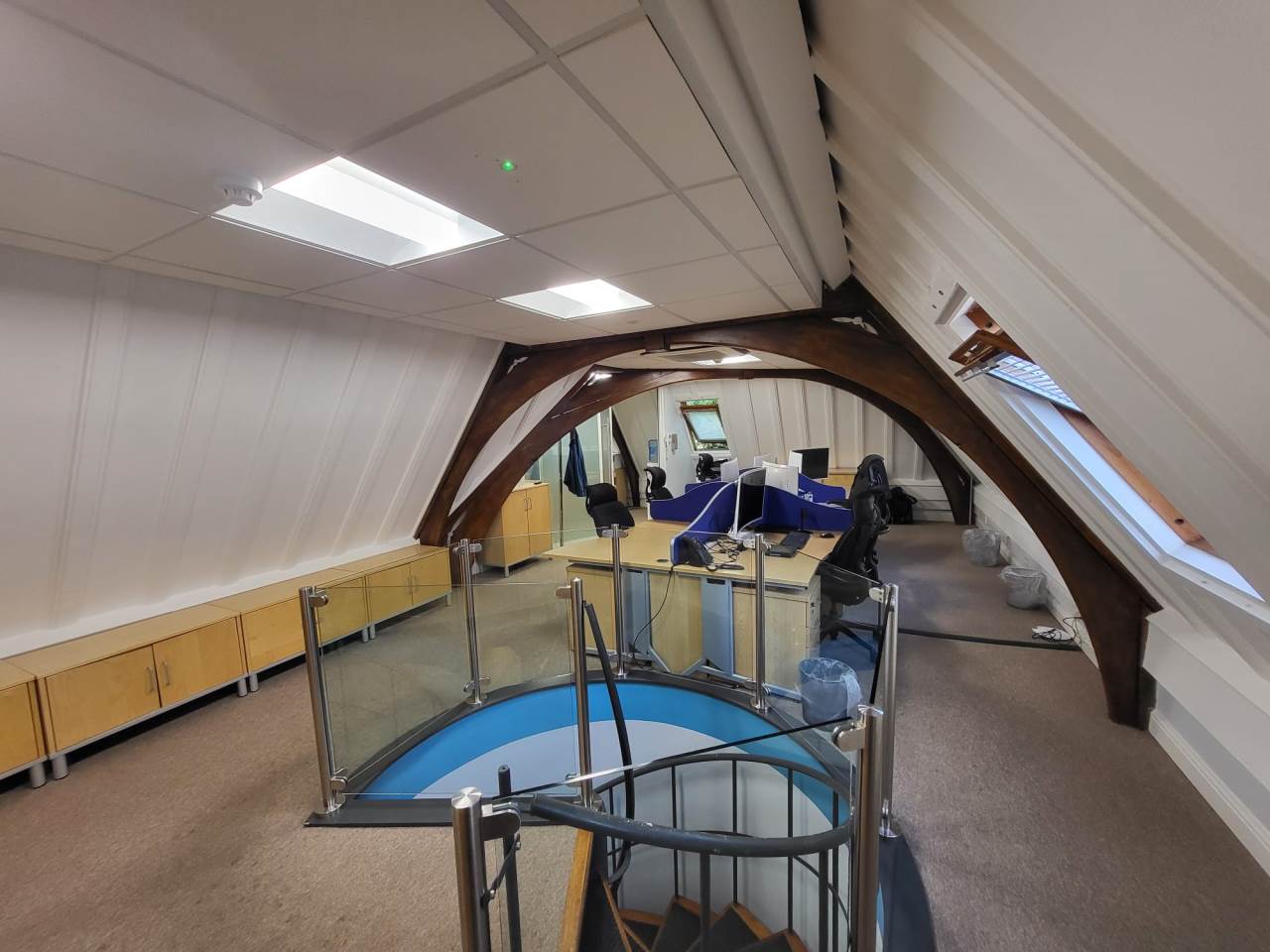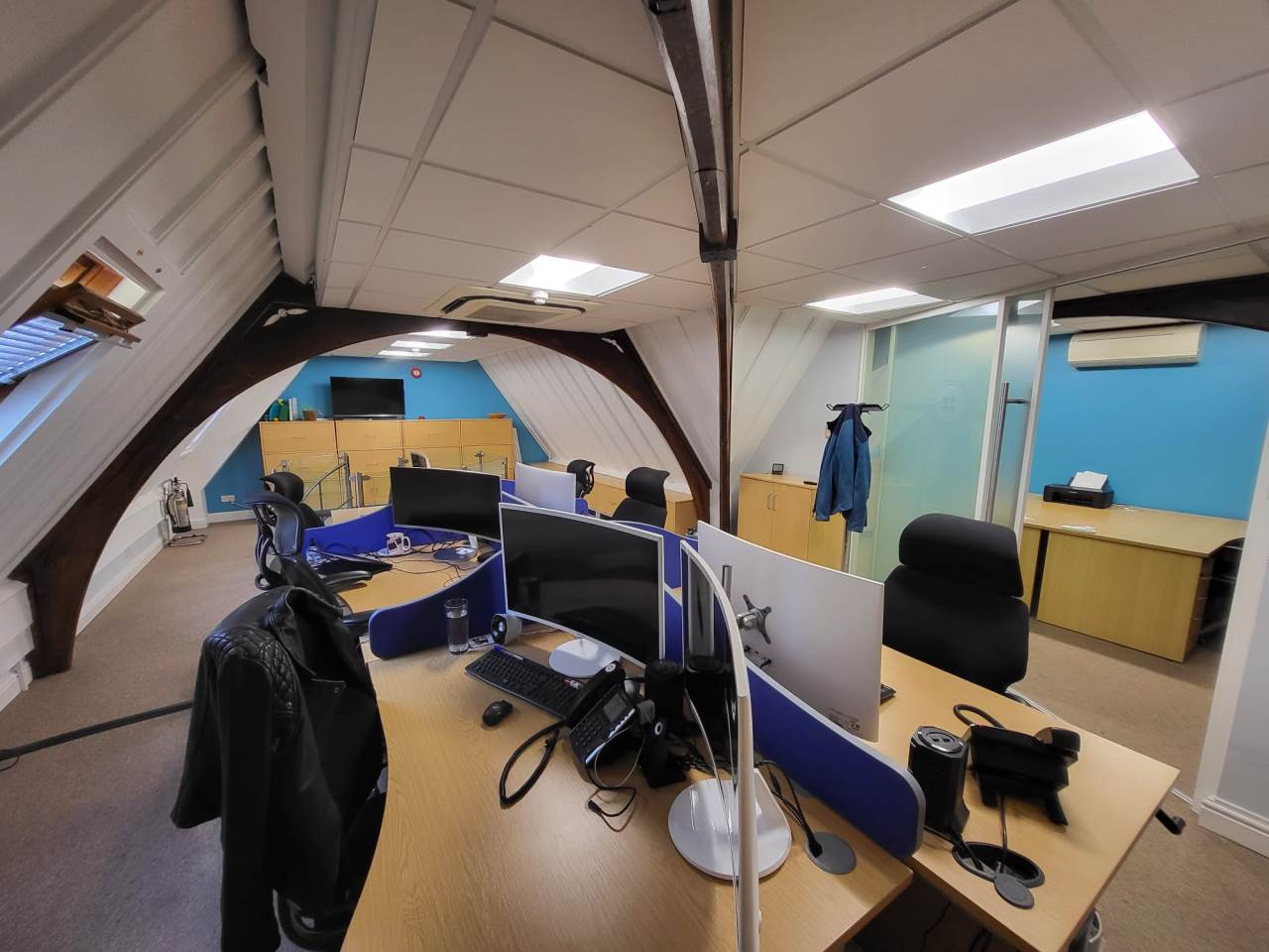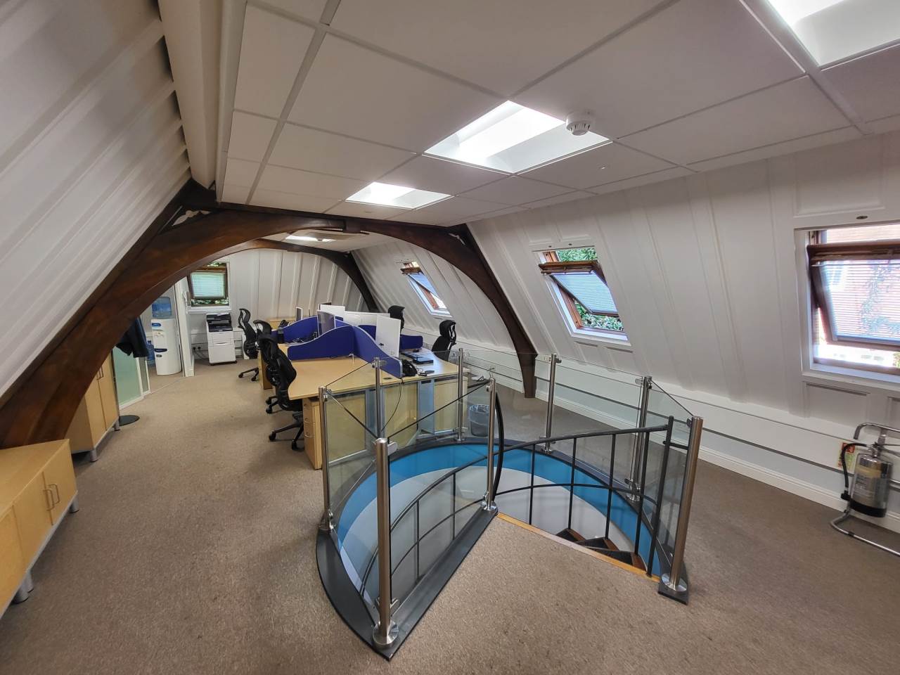Abode are delighted to offer to market this very well presented Freehold commercial property in the heart of the historic market town of Royston, Hertfordshire. The property has been fitted out to high standards with glass partitioning, air-condtioning and high level finishes throughout. Downstairs we have a private double office, and larger board room, WC, and seperate kitchenette. There are spiral stairs heading to the upstairs office which lead to an open plan office within the vaulted ceiling, The room is light with Velux windows to the rear, a glass partition separates another private office. The property further benefits from two parking spaces, the location is close to the town centre, and there are several nearby car parks with additional parking. The property is also a 8 minute walk to the mainline train station. Viewing available by prior appointment only, please contact Abode to arrange today.
