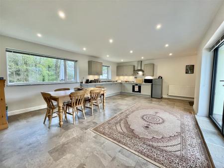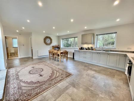Kitchen/Diner - 6.55m x 4.65m (21'06 x 15'03) - A spacious, light and airy room comprising a fully fitted kitchen with base and wall mounted units having granite effect laminate worktops, inset 1.5 bowl sink unit with drainer, space for a fridge/freezer, radiators, French doors lead out to the gravelled seating area to the rear of the property. The two windows to front aspect provide beautiful woodland views. Doors lead off to bedroom two and the shower room. An opening leads through to;