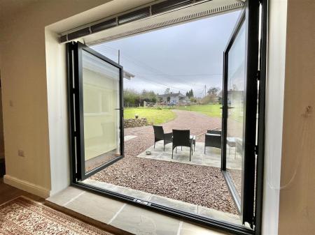 Outside - The bungalow sits within wraparound lawned gardens-ideal for children and pets. A five-bar gate opens to a private, gravelled driveway with parking for up to three vehicles. From the kitchen/dining room, French doors lead to a seating terrace perfect for relaxing and enjoying pleasant views over fields and woodland.
