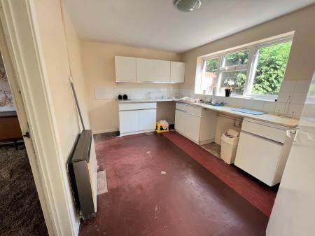 Kitchen - 3.63m x 2.69m (11'11 x 8'10) - Single bowl single drainer stainless steel sink unit with taps over, rolled edge worktops, range of base and wall mounted units with tiled surrounds and power points, ceiling light, wall mounted night storage heater, rear aspect upvc single glazed window overlooking the rear garden with views towards forest and woodland, door giving access into: