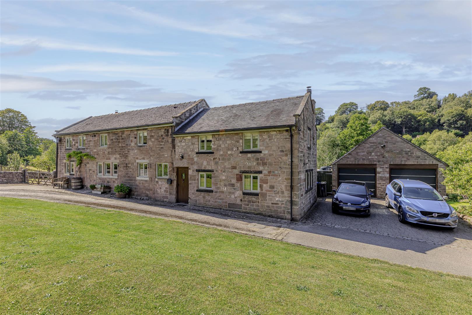 Outside - The property is approached via a country lane and leads to a private road off that provides access to the property and one other dwelling. There are double gates that lead to the side of the property where you will find ample hardstanding for parking and stone flagged area with gated access to the land and to the rear of the house. There is an additional driveway to the other side of the house which provides parking that leads directly to the double garage. The double garage measures - 7.16m x 5.58 m with remote controlled electric garage doors. There is gated access to the rear of the garden.