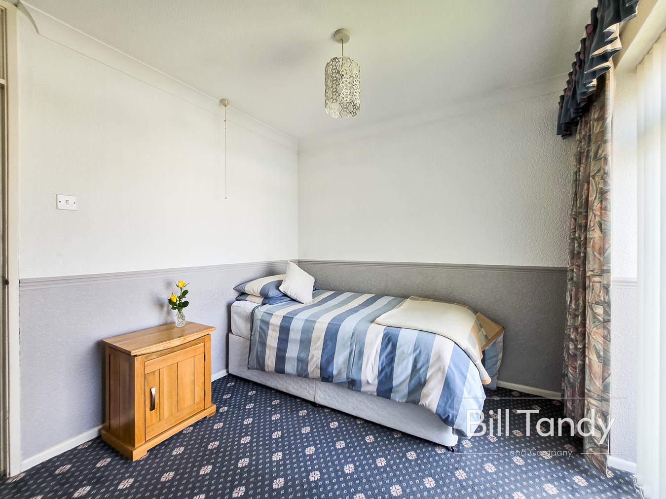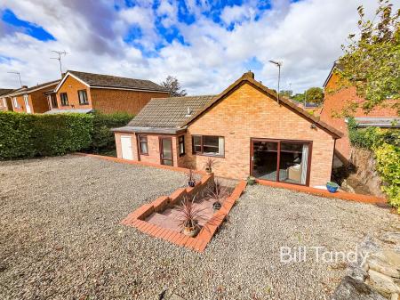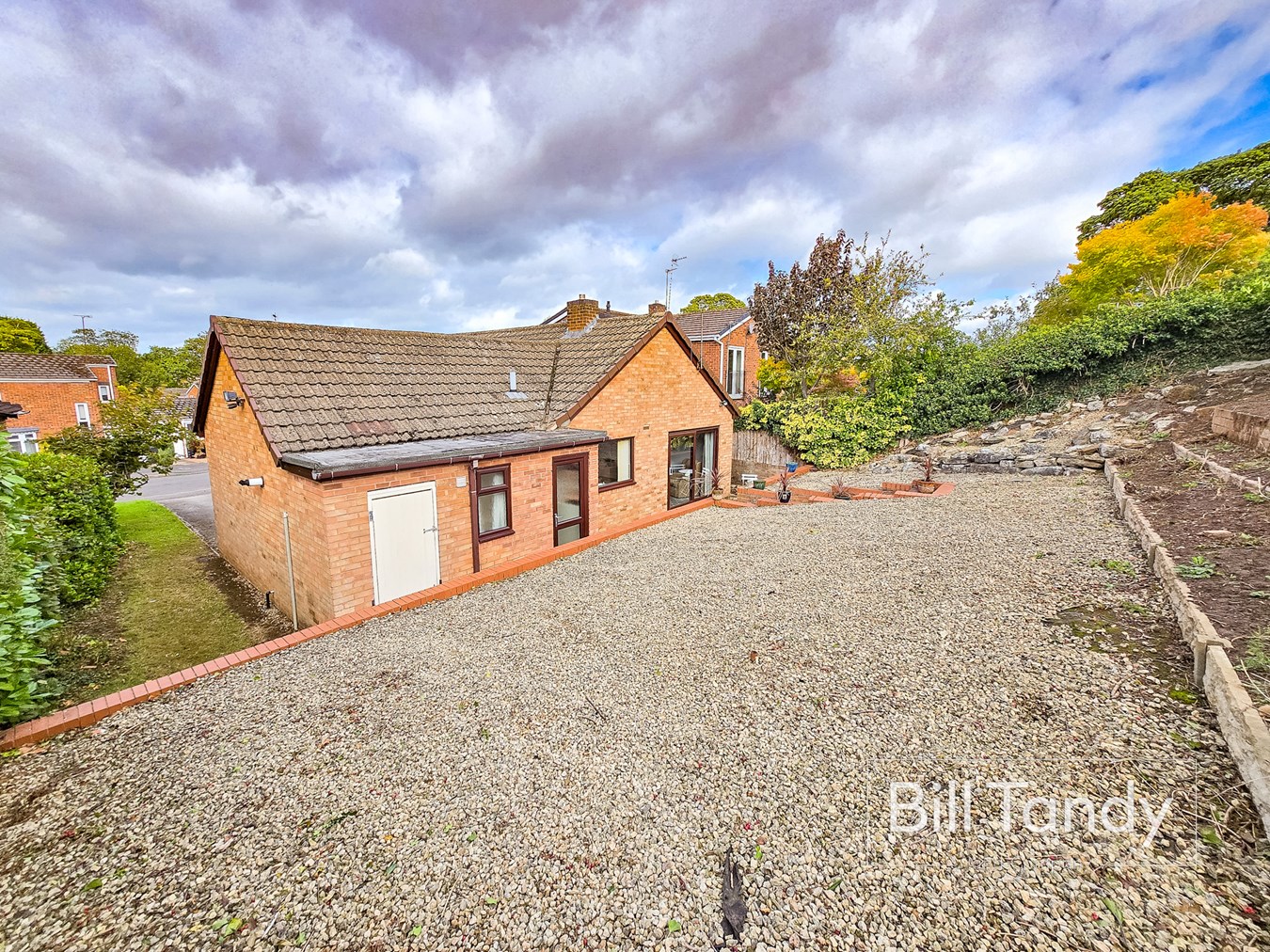 The bungalow has a tarmac tandem style driveway providing parking and leading to the garage and front entrance door, and there is a mainly lawned shaped foregarden. To the rear of the bungalow is a low maintenance tiered gravelled garden with paved patio space, brick built store and shrubs for screening.