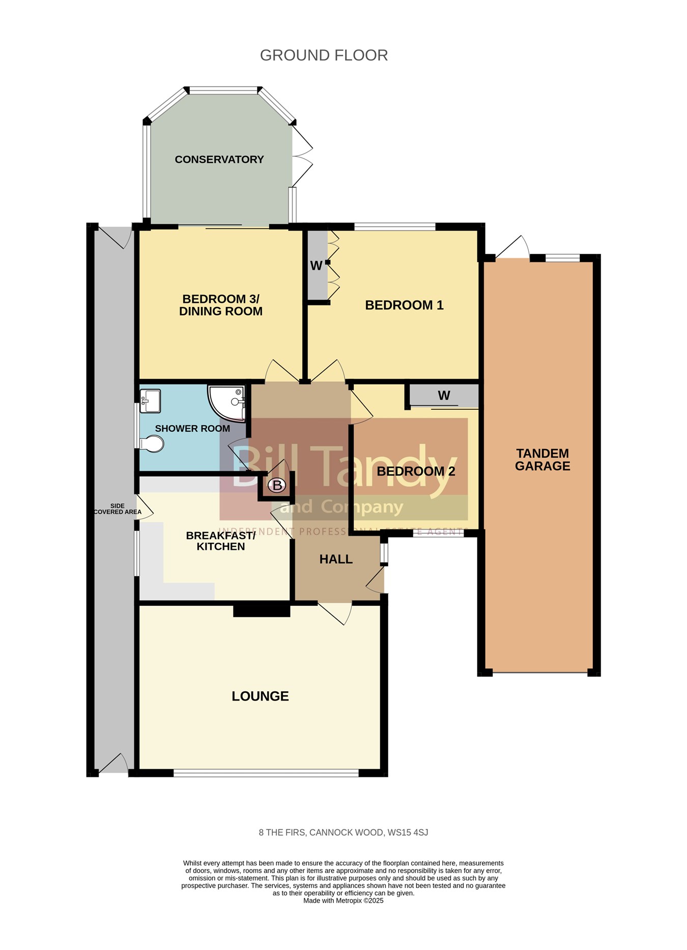 Bill Tandy and Company are delighted in offering for sale this well presented detached bungalow located at the end of the desirable cul de sac of The Firs. Enjoying a secluded corner plot, the property is located within the sought after village of Cannock Wood and is offered for sale with the benefit of no upward chain. The accommodation briefly comprises entrance hall, lounge, breakfast kitchen, three bedrooms, conservatory and modern shower room, and a useful side covered area provides access to both front and rear. One of the distinct features of the bungalow is its superb plot enjoying parking for numerous vehicles to front, a tandem length garage and a superb sized and secluded rear garden.LOCATION