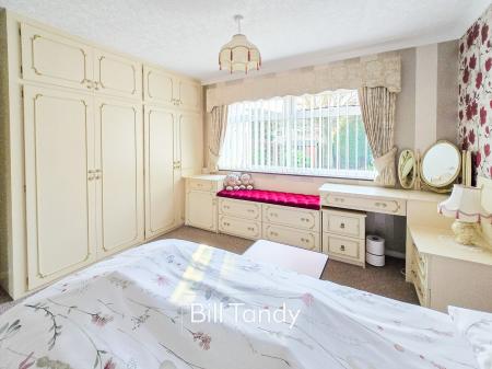 3.81m x 3.34m (12' 6" x 10' 11") having double glazed window to rear, radiator and range of fitted bedroom furniture comprising wardrobes, chests of drawers and bedside cabinets.