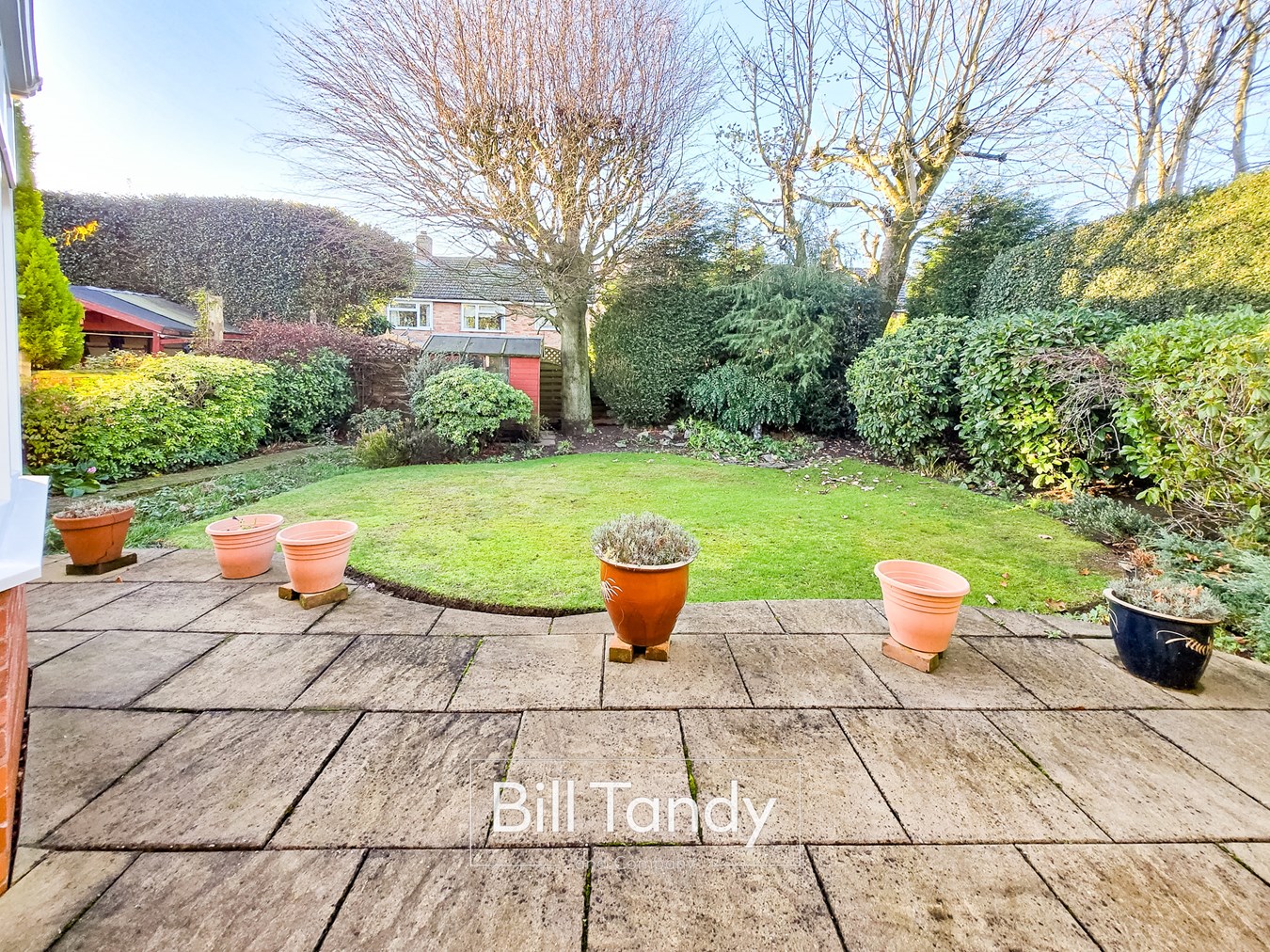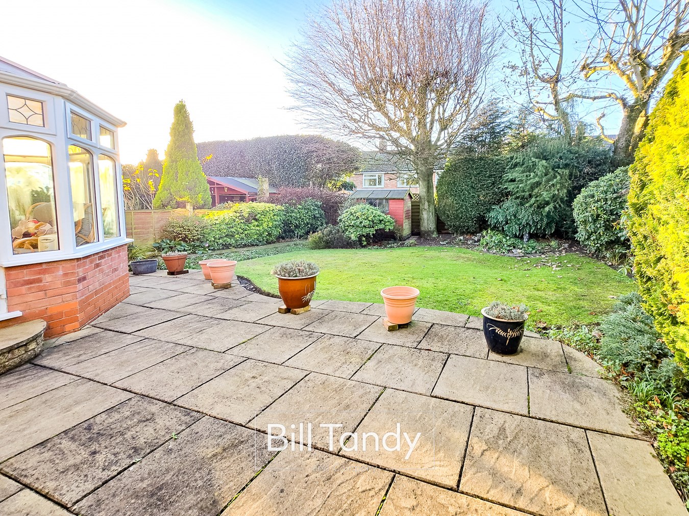 The property offers a superb secluded corner position located at the end of this desirable cul de sac. The majority of the frontage is block paved providing parking for a large number of vehicles leading to the side entrance door and tandem garage. To the rear of the property is a generous paved patio space with shaped lawn beyond with flower bed borders and the garden is well stocked with mature trees and shrubs for screening, and there is a storage shed.