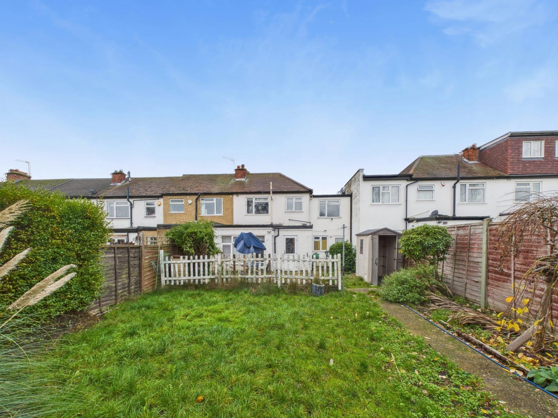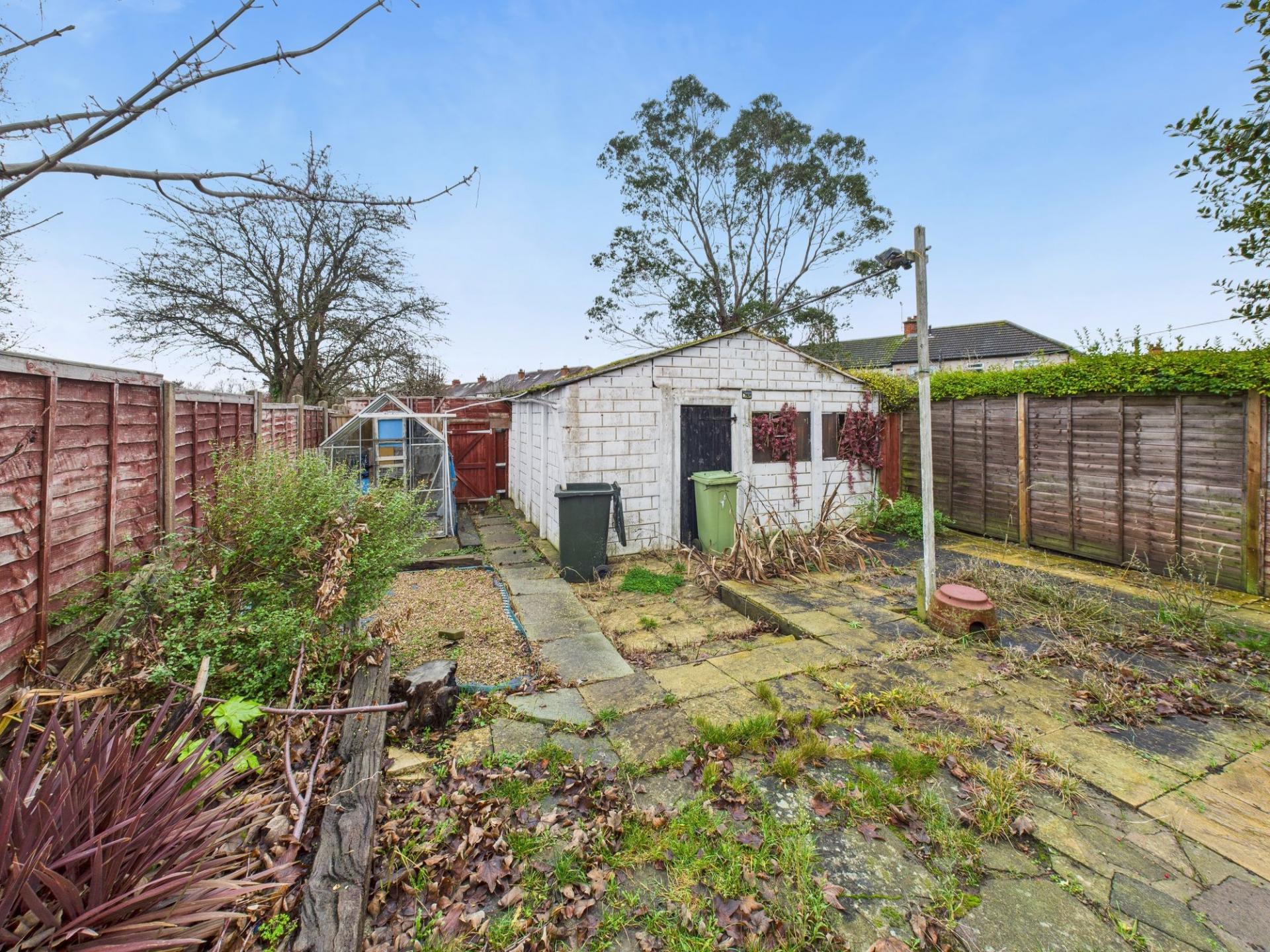 To the front is off street parking and to the rear is a large garden and garage with access via rear service road.