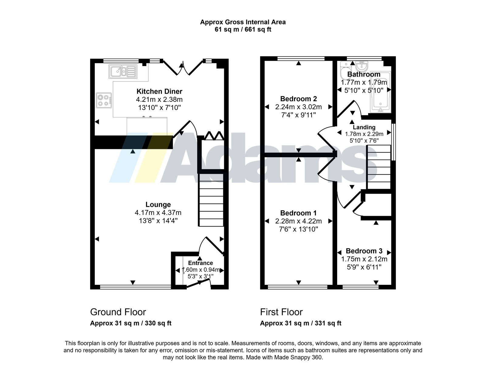 In brief, the accommodation comprises; entrance porch, lounge and kitchen/diner to the ground floor. To the first floor, there are three bedrooms and a family bathroom.