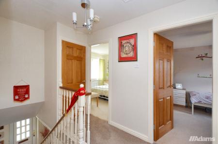 To the first floor, a bright and airy landing leads to four well-proportioned bedrooms, including a generous master suite with en-suite shower room, and a family bathroom serving the remaining bedrooms.