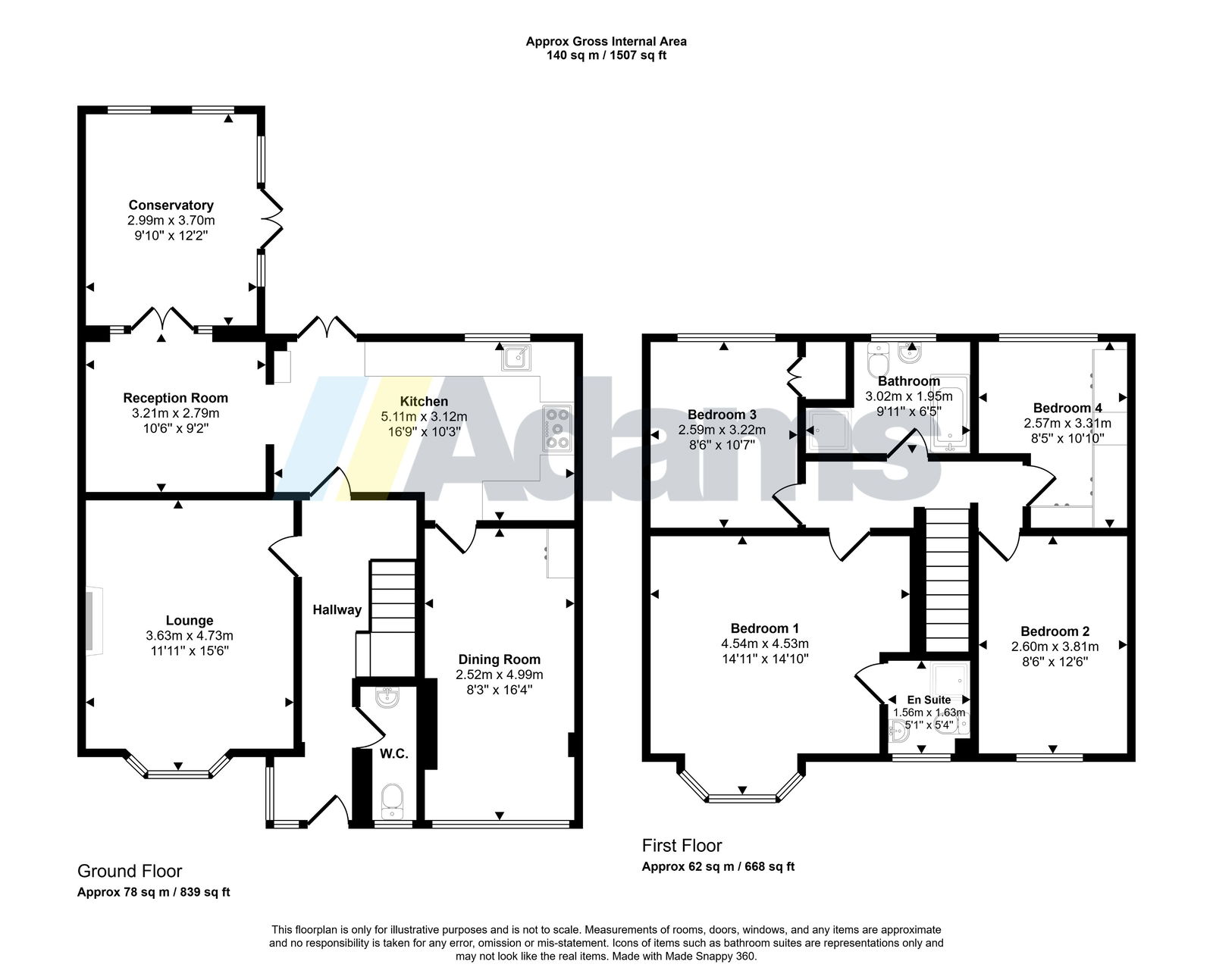 The accommodation briefly comprises: an inviting entrance hall, a cloakroom WC, a comfortable lounge, a well-appointed kitchen, a dining area, and a bright conservatory. The converted garage, currently used as a dining room, provides a versatile space that can adapt to various needs. Upstairs, there is a spacious master bedroom with an en-suite shower room, three additional well-proportioned bedrooms, and a family bathroom.