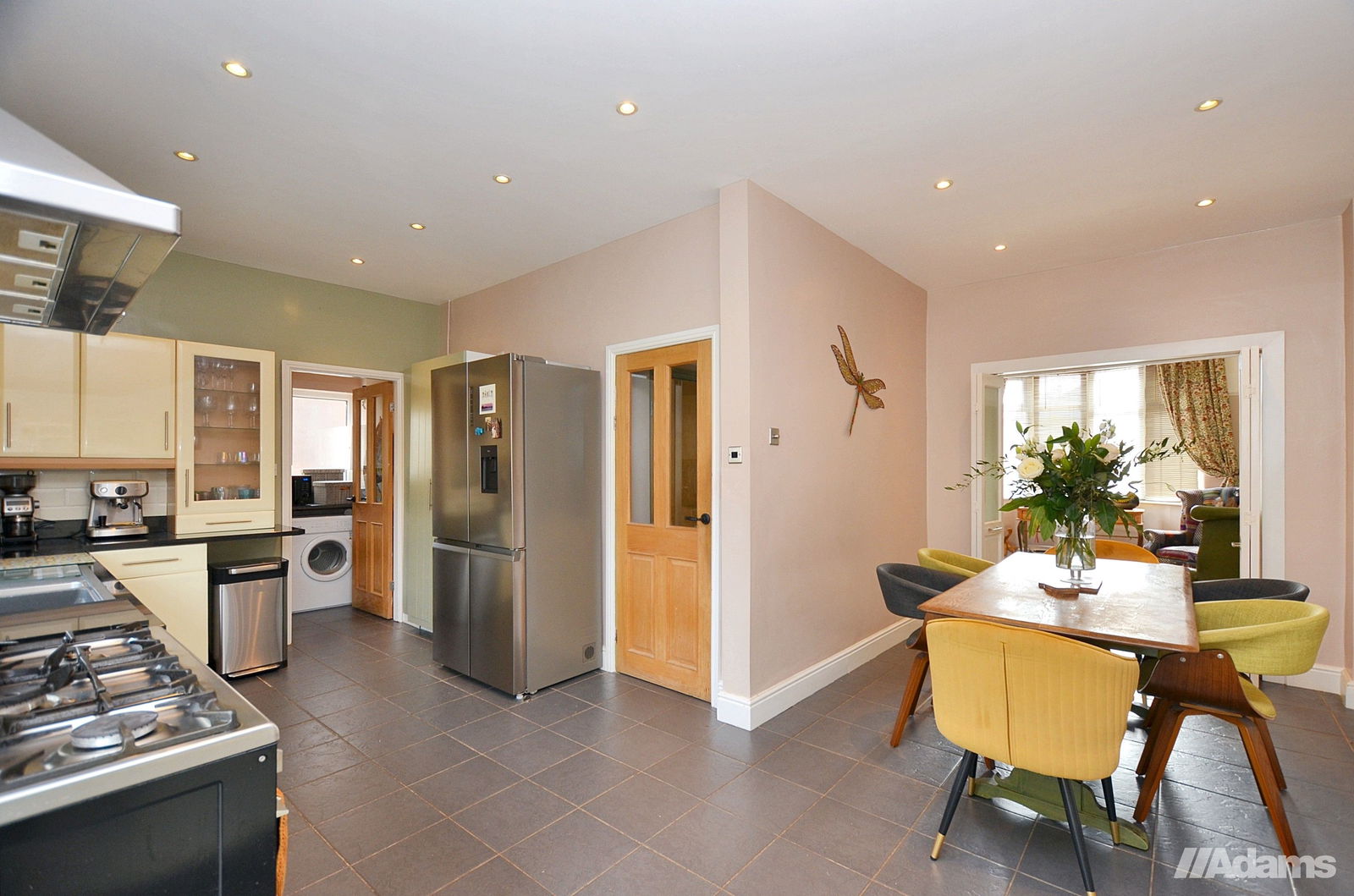 Beautifully maintained and elegantly designed throughout, the property provides spacious, move-in-ready accommodation. Upon entering, a bright and welcoming hallway leads to all main rooms, including two charming bay-fronted reception rooms that offer versatile living spaces. The heart of the home is the open-plan kitchen and dining area, bathed in natural light and ideal for both entertaining and everyday living. The well-equipped kitchen is complemented by a separate utility room and a convenient downstairs WC.