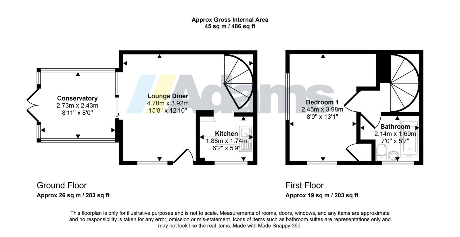The property offers well-balanced accommodation comprising a lounge and kitchen to the ground floor, whilst to the first floor there is a double bedroom and bathroom.