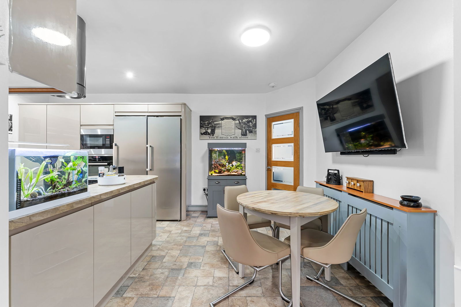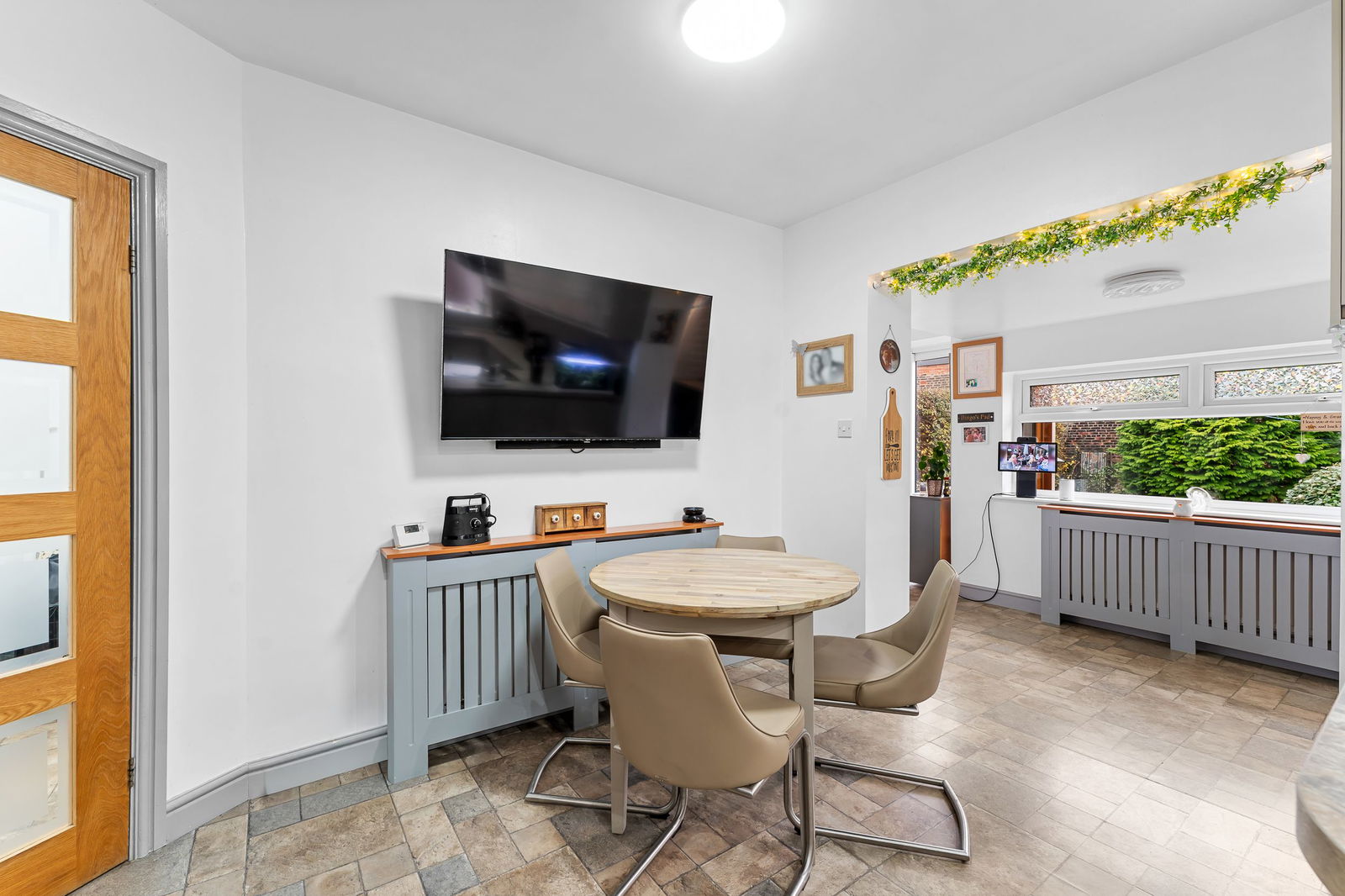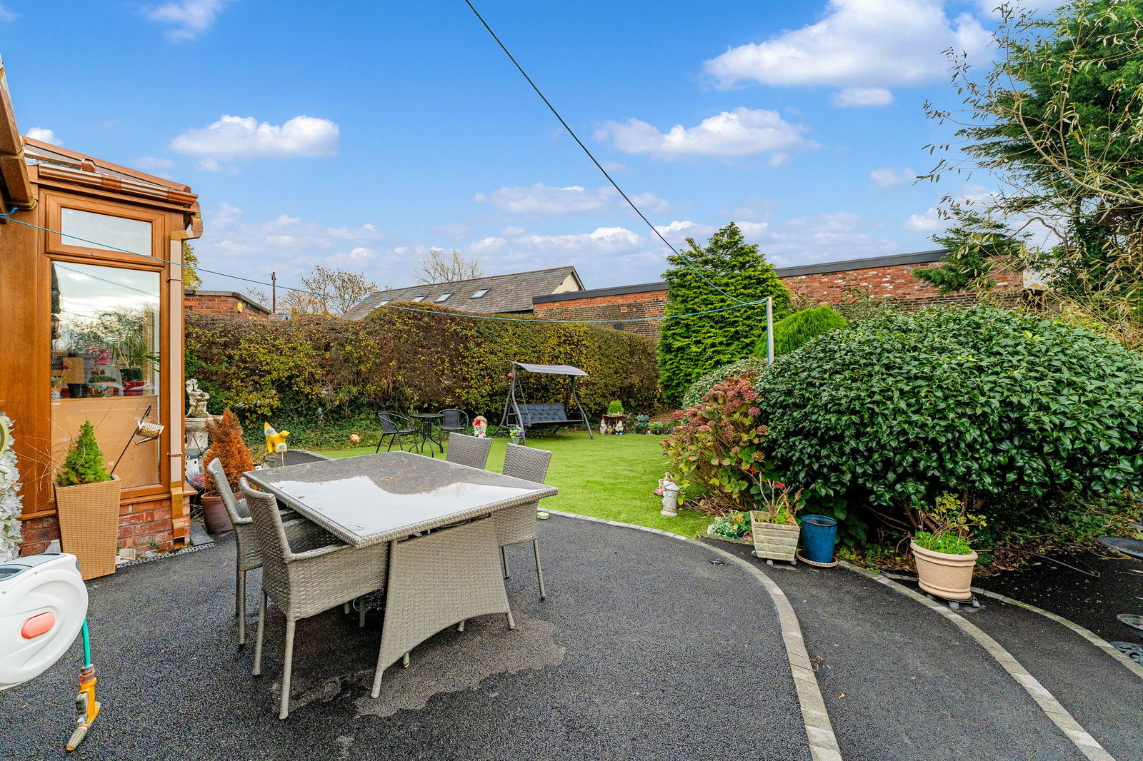 Externally, the property continues to impress, with beautifully maintained gardens to both front and rear, the rear enjoying a desirable south-facing aspect. Driveway parking is provided, along with an attached garage that has been thoughtfully split to provide versatile additional space—benefitting from power, heating, and a water supply. The front section of the garage, complete with electric roller door, provides ideal secure storage.