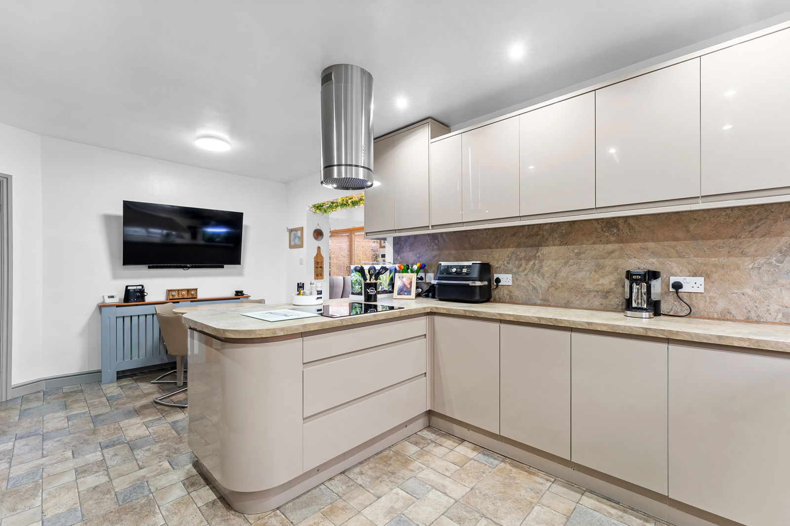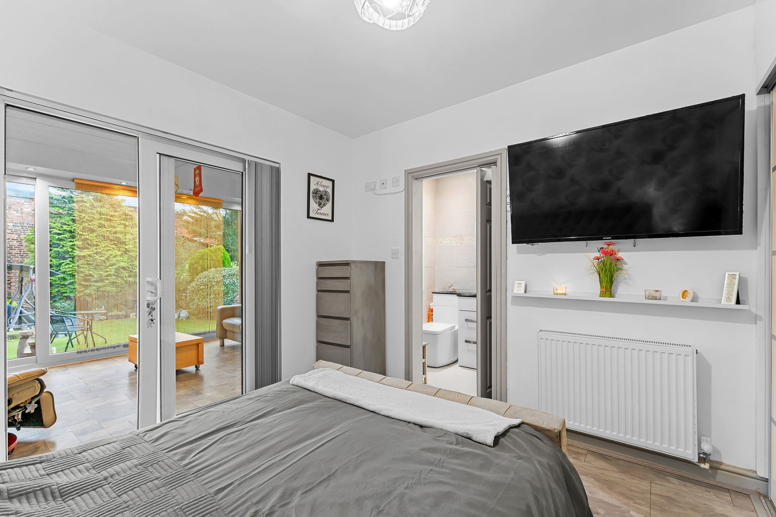 In brief, the accommodation comprises a welcoming and generous entrance hall, a bright and comfortable lounge, and a large kitchen/diner opening into an additional living area leading onto the garden, creating a fantastic open-plan living space perfect for relaxing or entertaining. There is also a utility room, shower room, and two well-proportioned bedrooms, with the main bedroom further benefiting from access to an adjacent bathroom. The property also benefits from air conditioning.