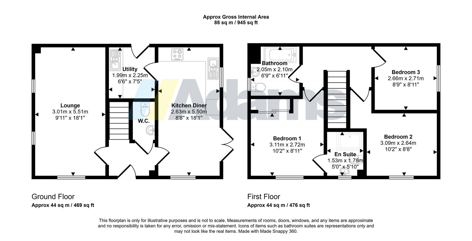 In brief, the ground floor comprises: entrance hall, cloakroom/WC, spacious lounge, modern kitchen/diner, and a separate utility room. To the first floor, you will find three double bedrooms, each featuring fitted wardrobes. The master bedroom further boasts en-suite facilities, complemented by a stylish family bathroom serving the remaining rooms.