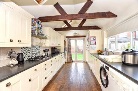 Internally, the accommodation is both spacious and versatile, beginning with an inviting entrance hall that sets the tone for the remainder of the home. The ground floor boasts a bay-fronted lounge, formal dining room, and a charming snug featuring a turret-style bay window, each enjoying views over the beautifully landscaped gardens. Completing the ground floor is a modern fitted kitchen with integrated appliances, retaining attractive period beams and opening via patio doors onto the rear garden—ideal for entertaining and everyday family living.