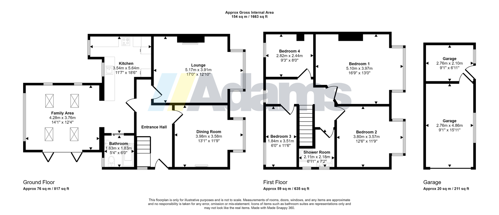 To the first floor, four generously sized bedrooms are arranged around a central landing, served by a modern shower room, creating the ideal layout for family life.