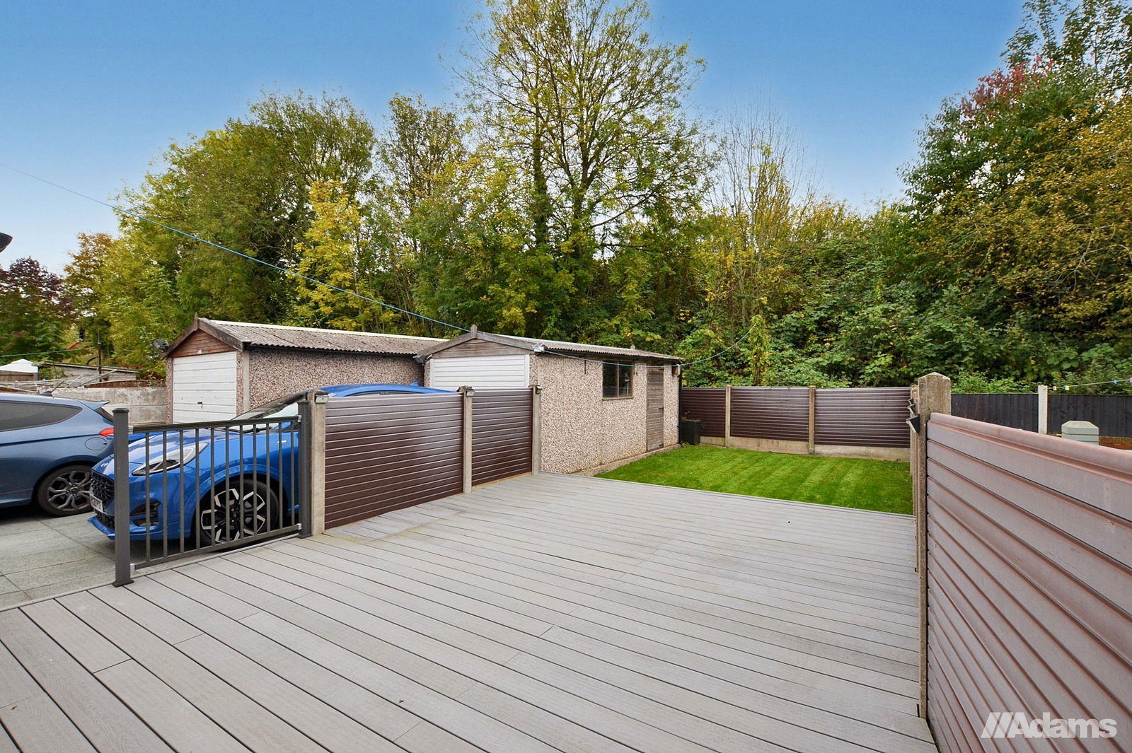 Externally, the property continues to impress with a landscaped rear garden featuring a decked patio area, perfect for outdoor dining or relaxing in the sun. To the front, a driveway provides ample off-road parking, along with a garage and side access to the rear.