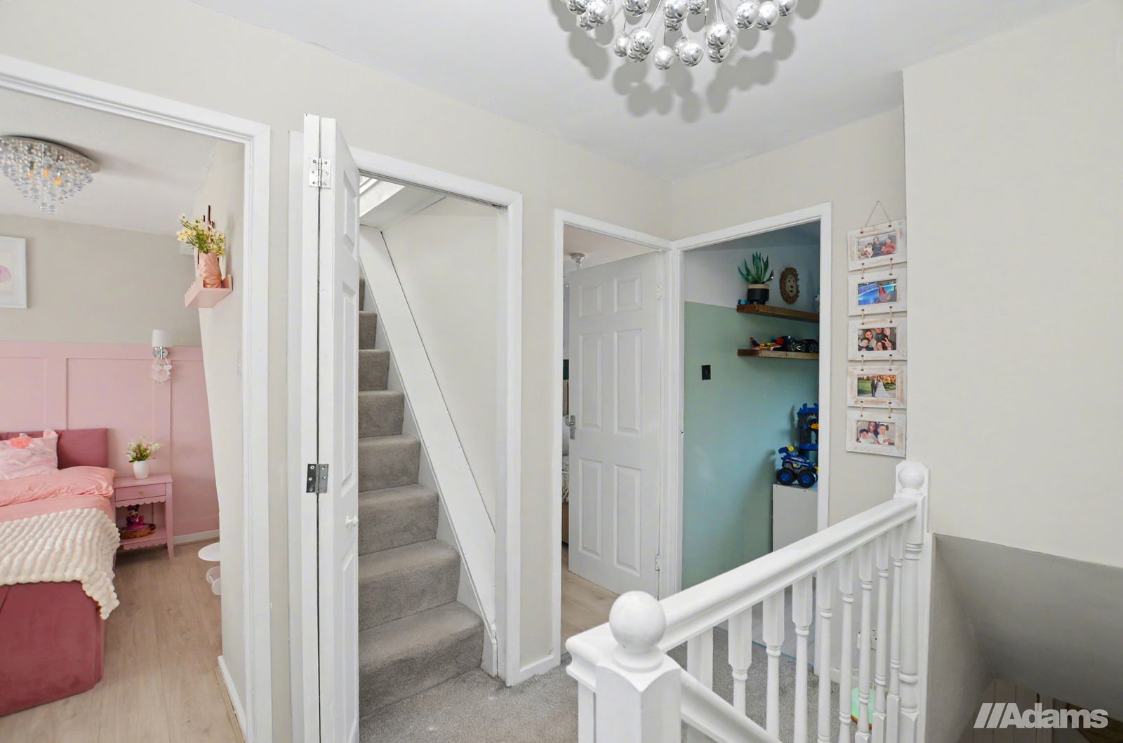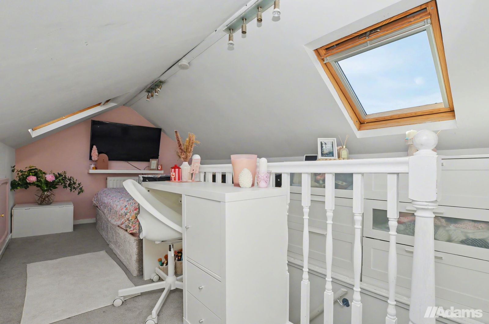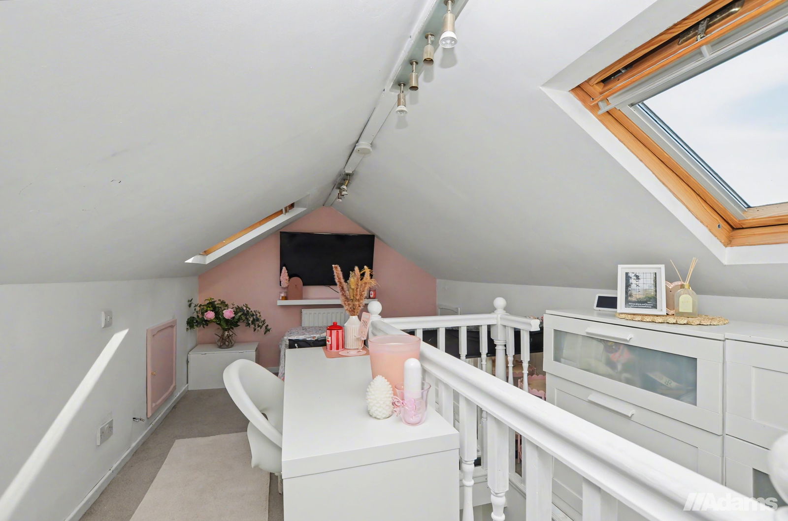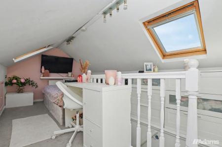 A further staircase leads to a useful loft room, complete with skylight windows and ample eaves storage, offering flexible use as a home office, hobby room or additional living space.