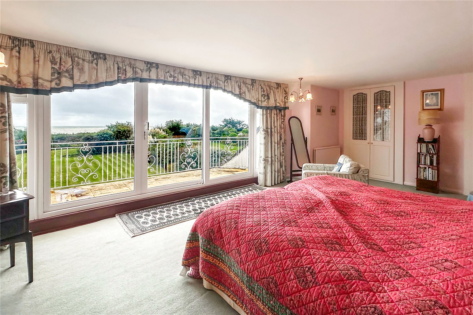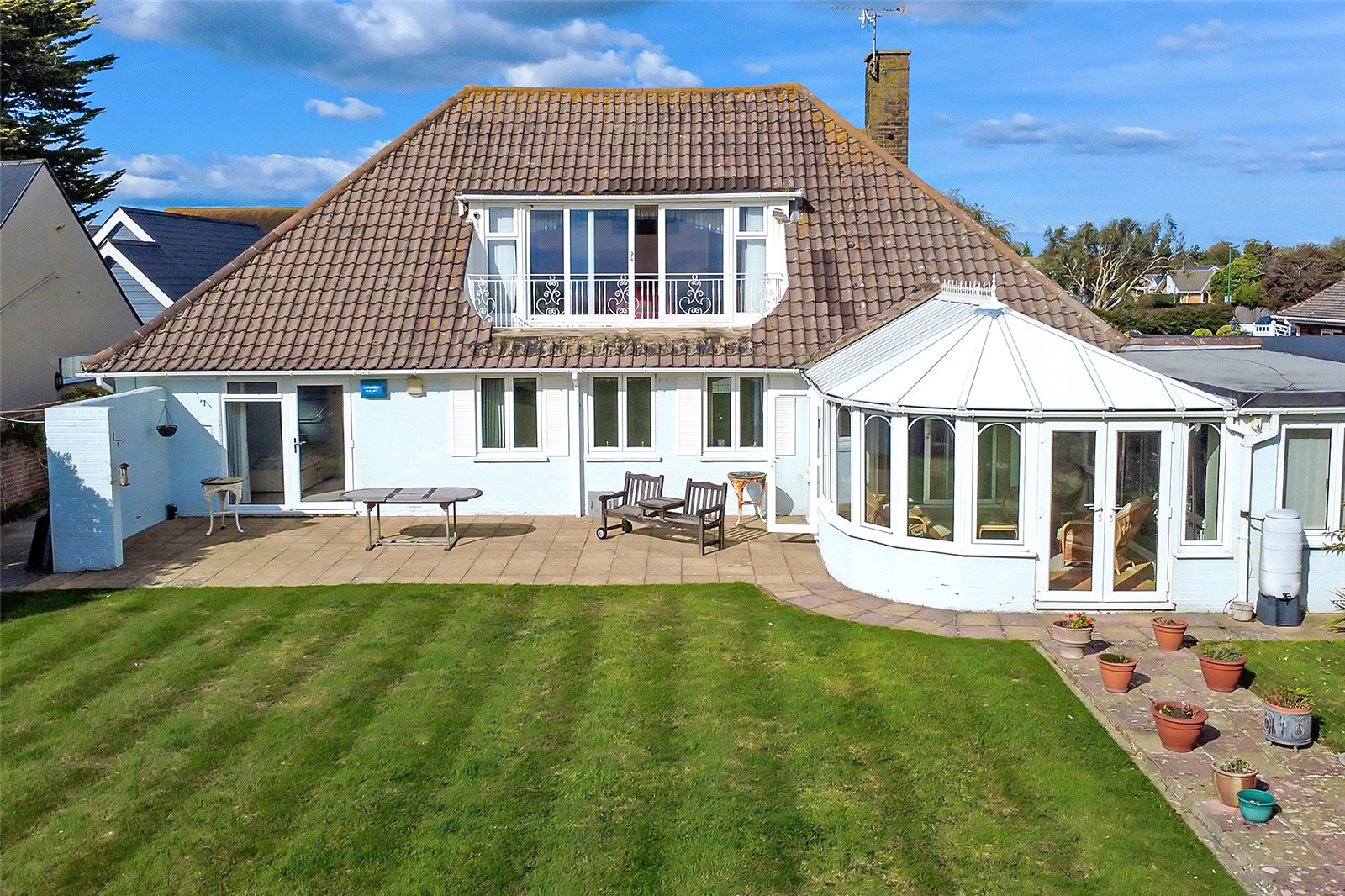 An exceptional opportunity to acquire a spacious and versatile home on Rustington Seafront, backing directly onto the greensward with private access to the beach. This impressive property offers three bedrooms, three reception rooms, and a separate study off the conservatory, with the principal rooms thoughtfully positioned to maximise views over the southerly facing rear garden and towards the coastline. The standout master bedroom occupies the entire first floor, extending over 28 feet and featuring a private balcony. On the ground floor, the accommodation includes a bright conservatory overlooking the garden, two additional bedrooms and a well-appointed kitchen/breakfast room with a front aspect. The rear garden is a tranquil, sun-drenched space laid mainly to shaped lawn with mature borders, opening directly onto the greensward, foreshore, and seafront, making this a truly rare coastal retreat.