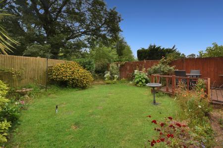 Outside: The property is approached from the road over a driveway, providing parking for two cars and giving access to the attached garage. The front garden is laid to lawn The enclosed, private rear garden is also laid to level lawn with planted borders and a raised decked terrace for alfresco dining, along with a timber store/workshop, light and power connected.
