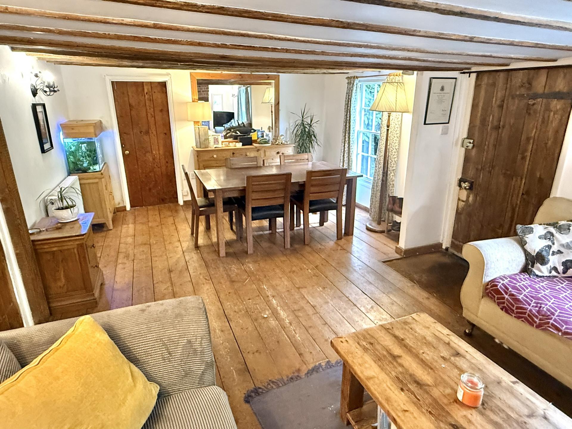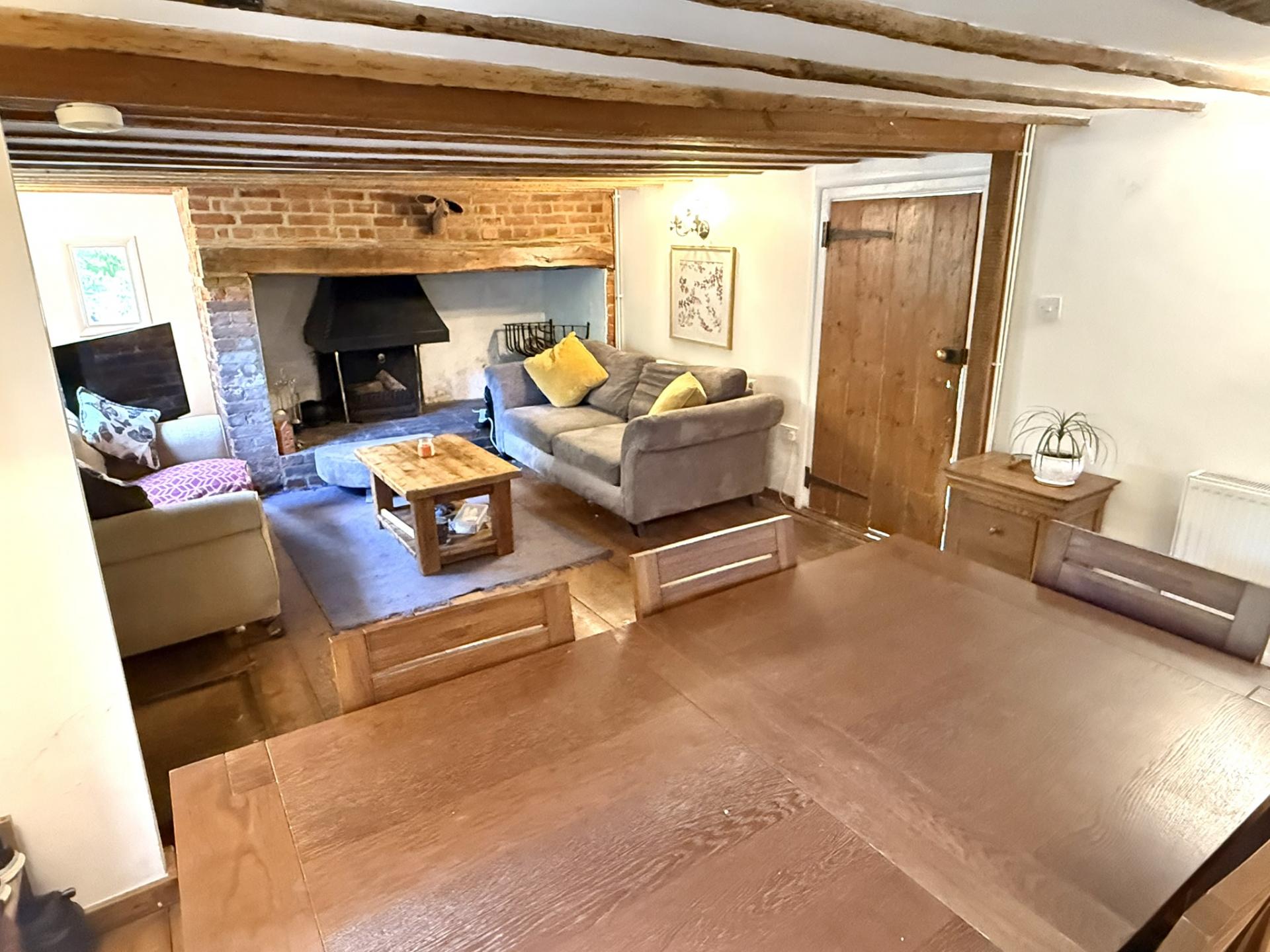 - Large living / dining room with Inglenook fireplace