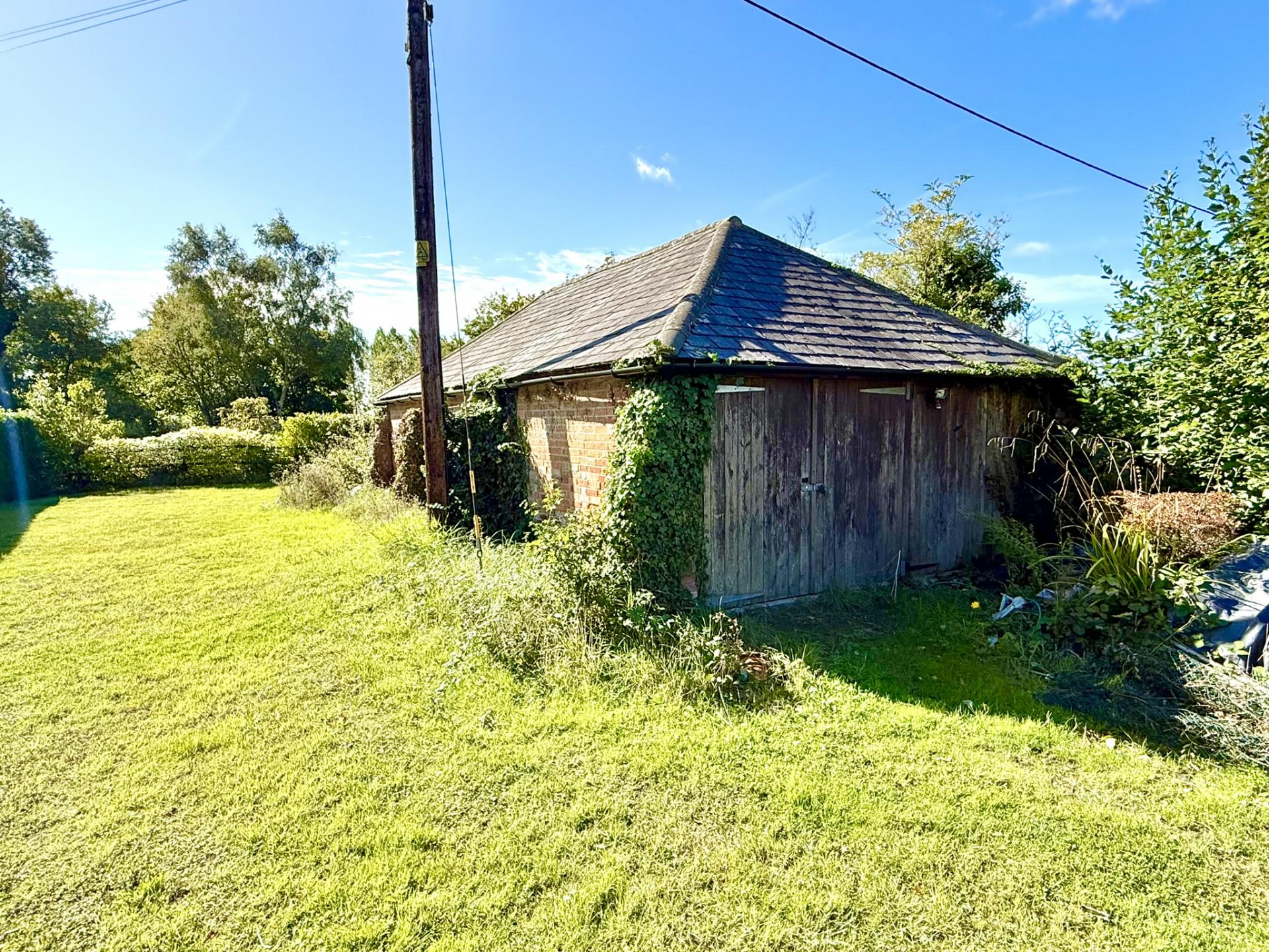 Externally the property enjoys a generous wrap around garden with green house and vegetable patch set in grounds of approximately 0.33 acres. Situated opposite the bungalow is a further brick constructed farm barn that has been converted to form a very large double garage with purpose-built workshop at the end. From initial enquiries we believe this building has potential to be converted into a number of different uses including a studio, workshop, garage store for up to four cars or even be converted into residential use possibly as a holiday let or additional annexe accommodation.