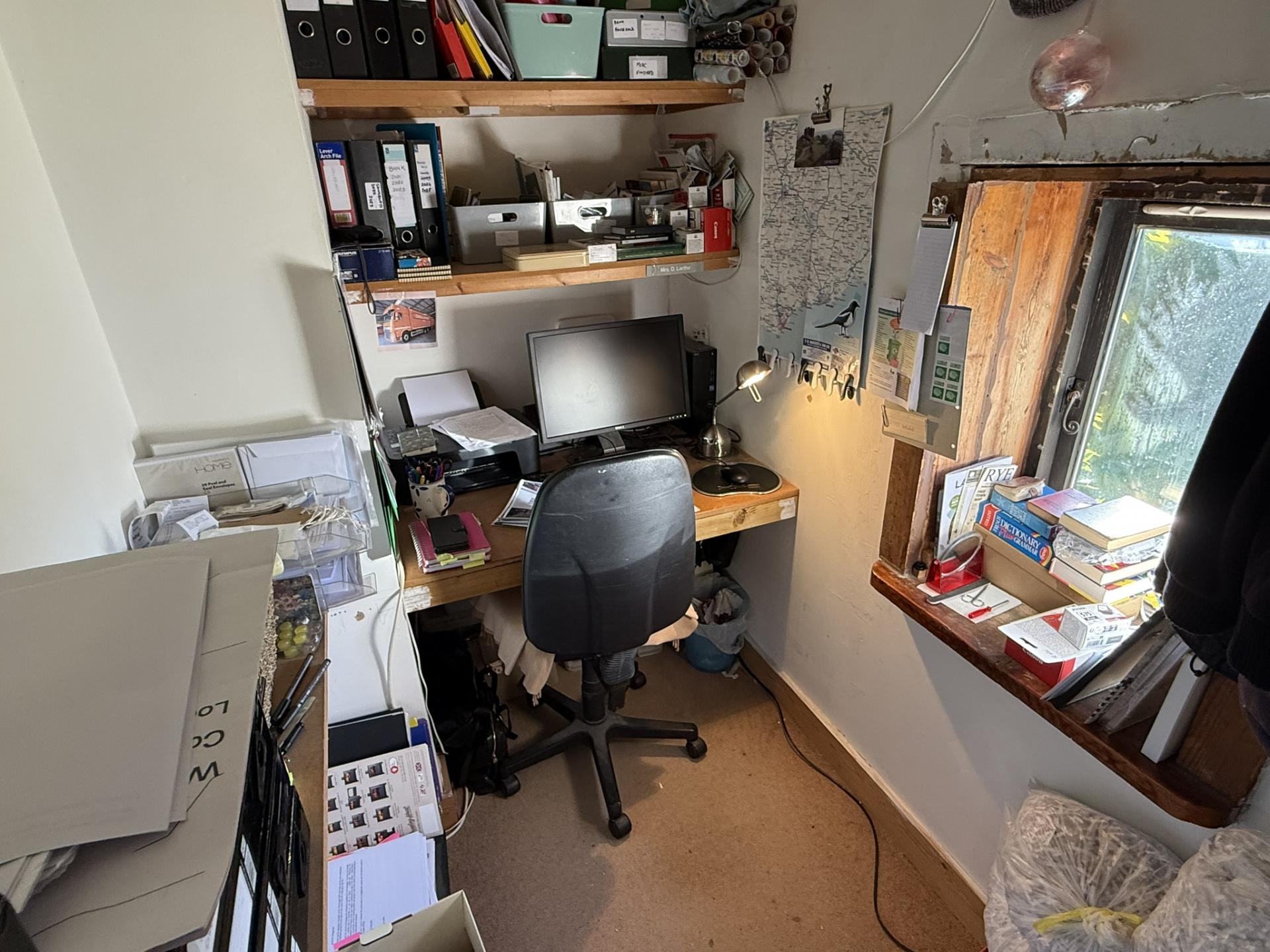 On the opposite side of the living room is a small study room with front facing window, a second double bedroom with side windows that is currently being used as second office / hobby room, and a further door leading to master bedroom suite with access to a shower room/WC and further door leading into the master bedroom with double aspect windows and built in wardrobes.