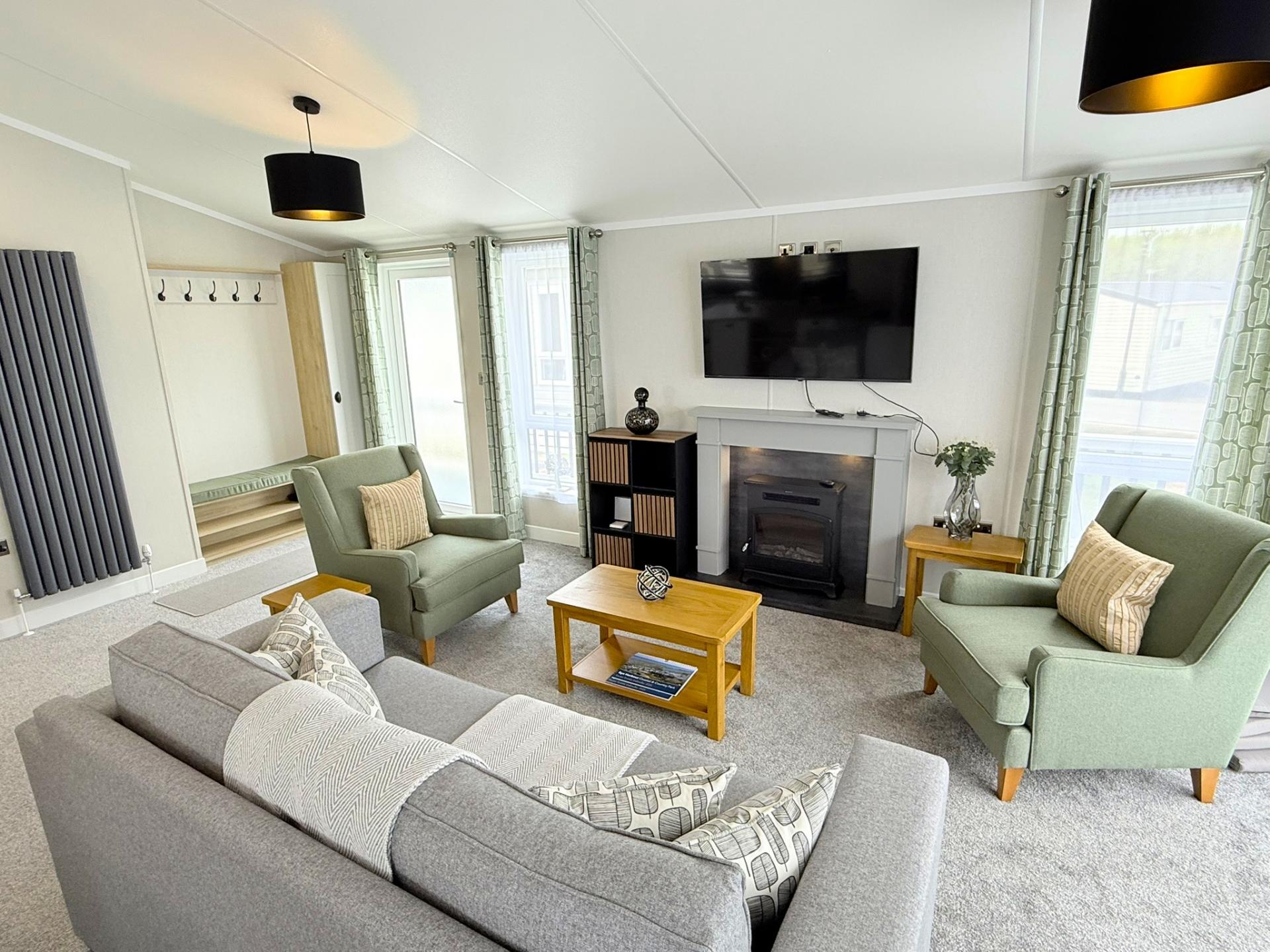 Externally the lodge benefits from two decked terraces with the main deck benefiting from new outside table and chairs that are included, and underneath potential storage area.