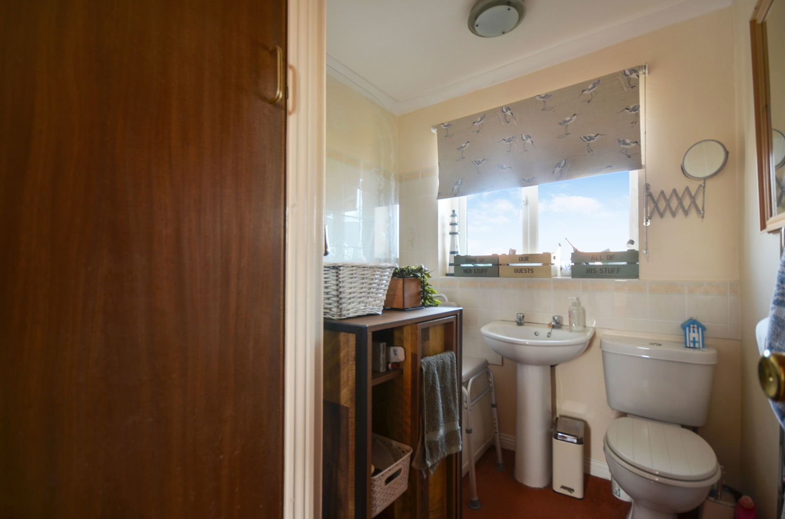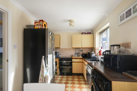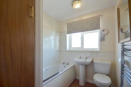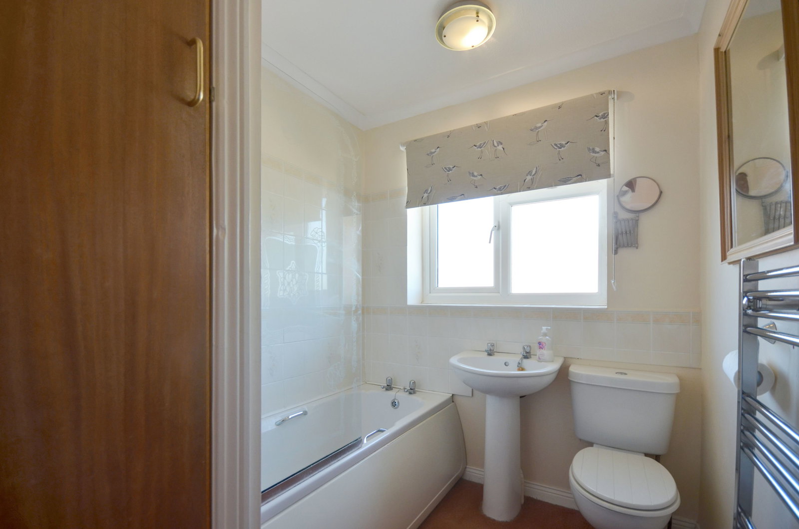 Upstairs, the landing leads to three versatile bedrooms and the family bathroom. Bedroom one is a comfortable double overlooking the front, while bedroom two offers similar proportions with a peaceful outlook over the rear garden. The third bedroom is an ideal space for a home office or nursery. Serving the bedrooms is a well-maintained bathroom fitted with a classic suite, including a panelled bath with shower over, wash hand basin, and WC.