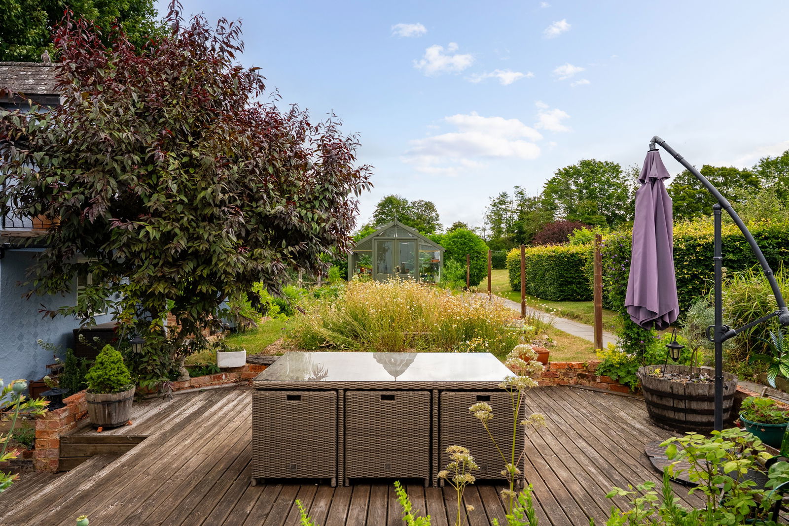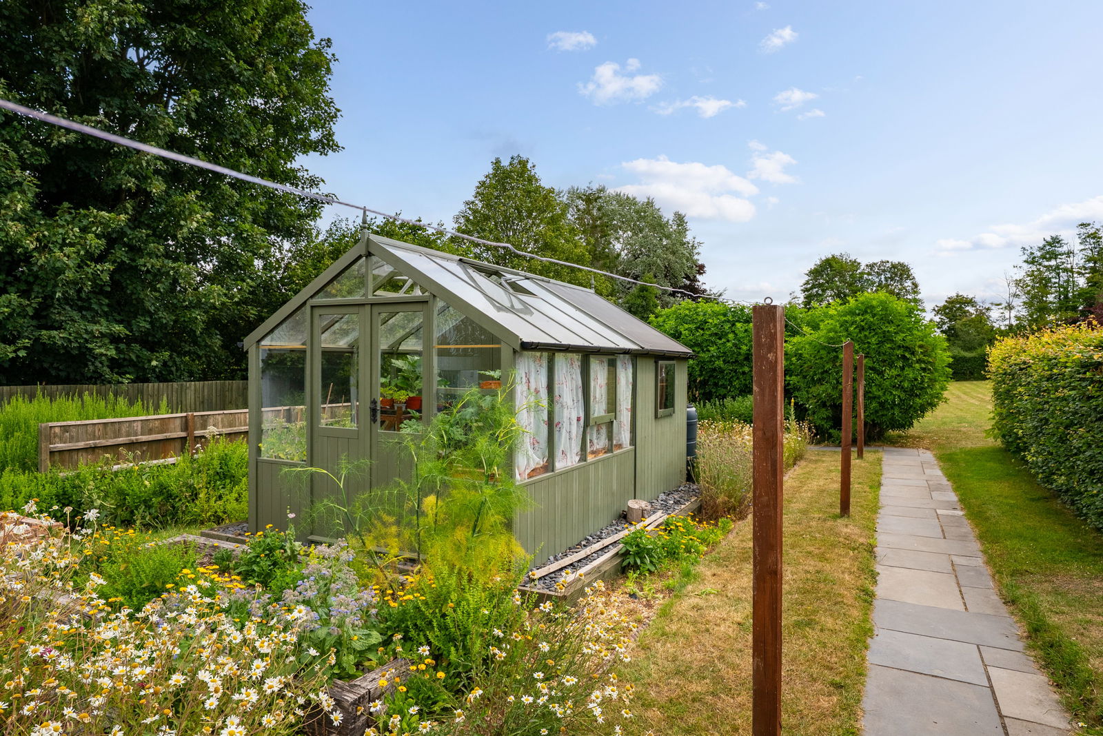 - A mature plot approaching 2 acres of gardens, vegetable plots and meadow