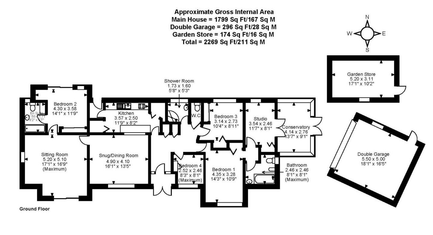 The principal bedroom is generously proportioned and enjoys a light-filled aspect, while bedroom two benefits from sliding doors leading directly onto the garden, creating the feel of a private retreat. The additional bedrooms offer flexibility for family members, guests or as a dedicated study. These are served by a family bathroom, additional shower room and separate cloakroom, providing excellent practicality.
