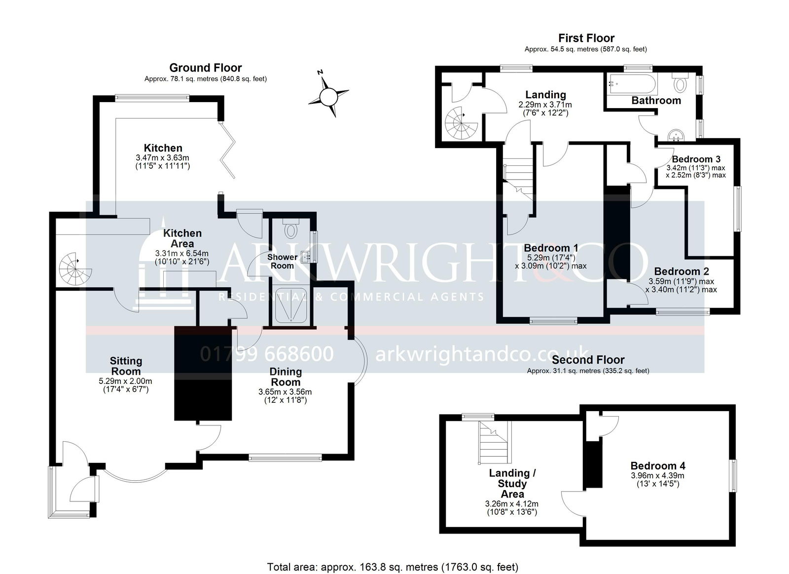 - Three bedrooms on the first floor plus two further adjoining rooms above