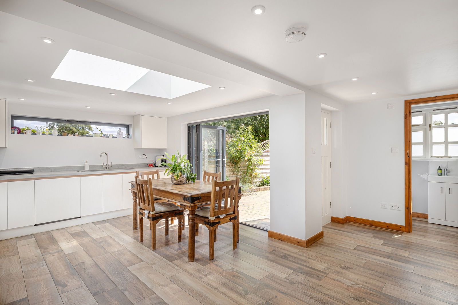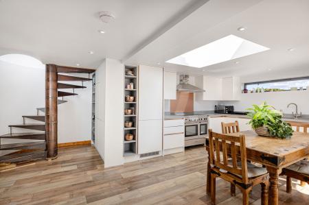 - Impressive kitchen/family room with skylights, slot window and bi-fold doors to courtyard