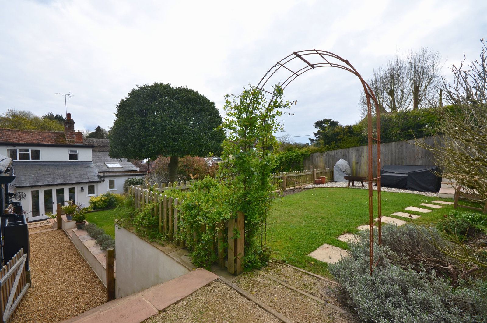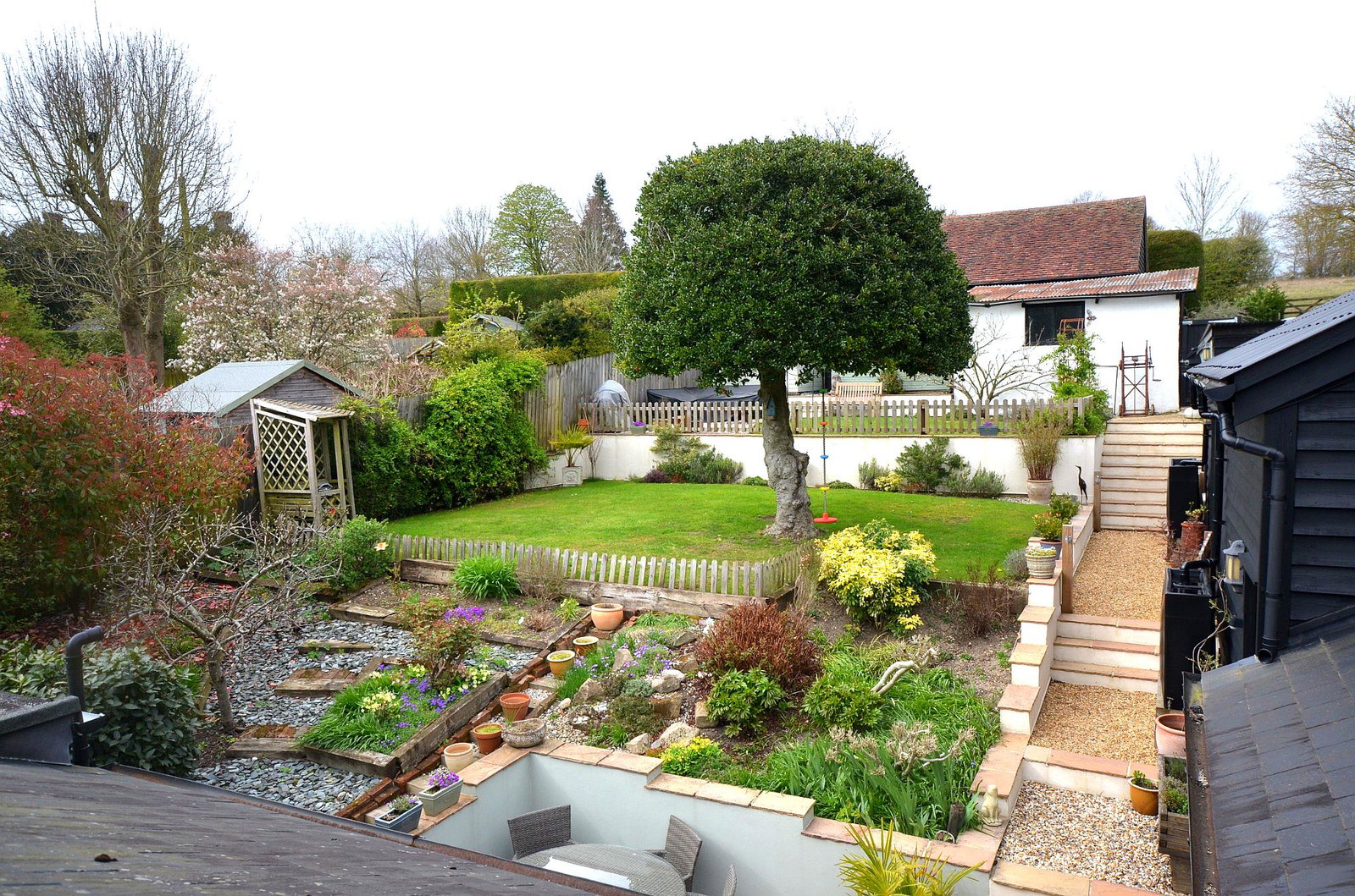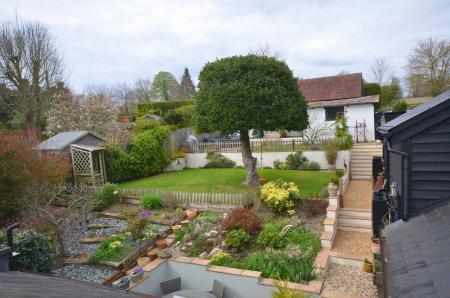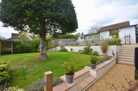 The property is set back from the road behind a pretty low-level brick wall with wrought iron fencing and gate. There is a small front garden with mature bushes, shrubs and path leading to the front door. To the rear of the property is an enclosed landscaped garden over split levels, including a paved area, ideal for Al Fresco dining, with steps leading up to the main garden area, which includes two lawned areas together with a variety of mature trees, shrubs and bushes, and a selection of well stocked flower beds. There are two garden sheds and a gate that provides access to a rear driveway with two useful garages, one with power connected.