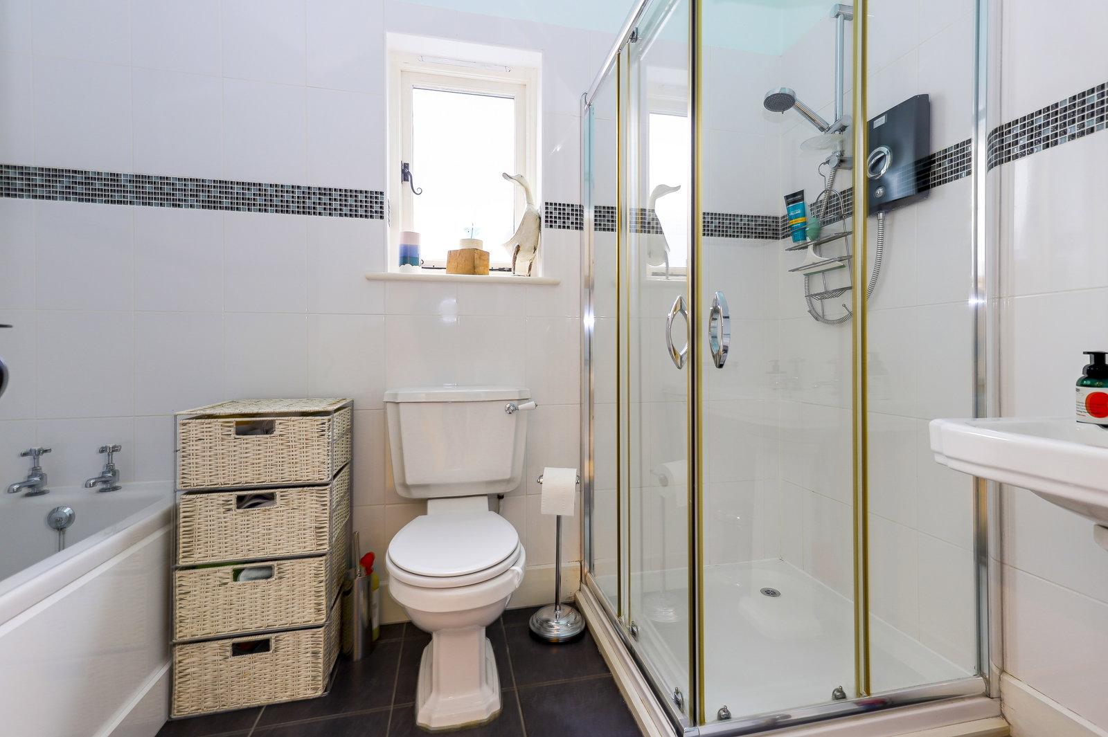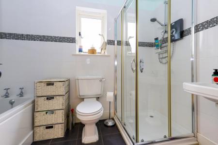 Comprising of suite with a panel bath, wash hand basin, fully tiled enclosed shower cubicle with electric power shower, WC, window to rear aspect, tiled floor with under floor heating.