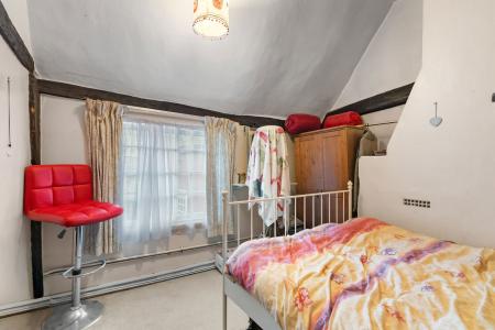 Upstairs, the main bedroom enjoys a window to the front aspect with views across Bridge Street and beyond. The second bedroom also benefits from a side-facing window and offers generous proportions. A spacious family bathroom is accessed from the landing, and there are two fitted cupboards providing additional storage.